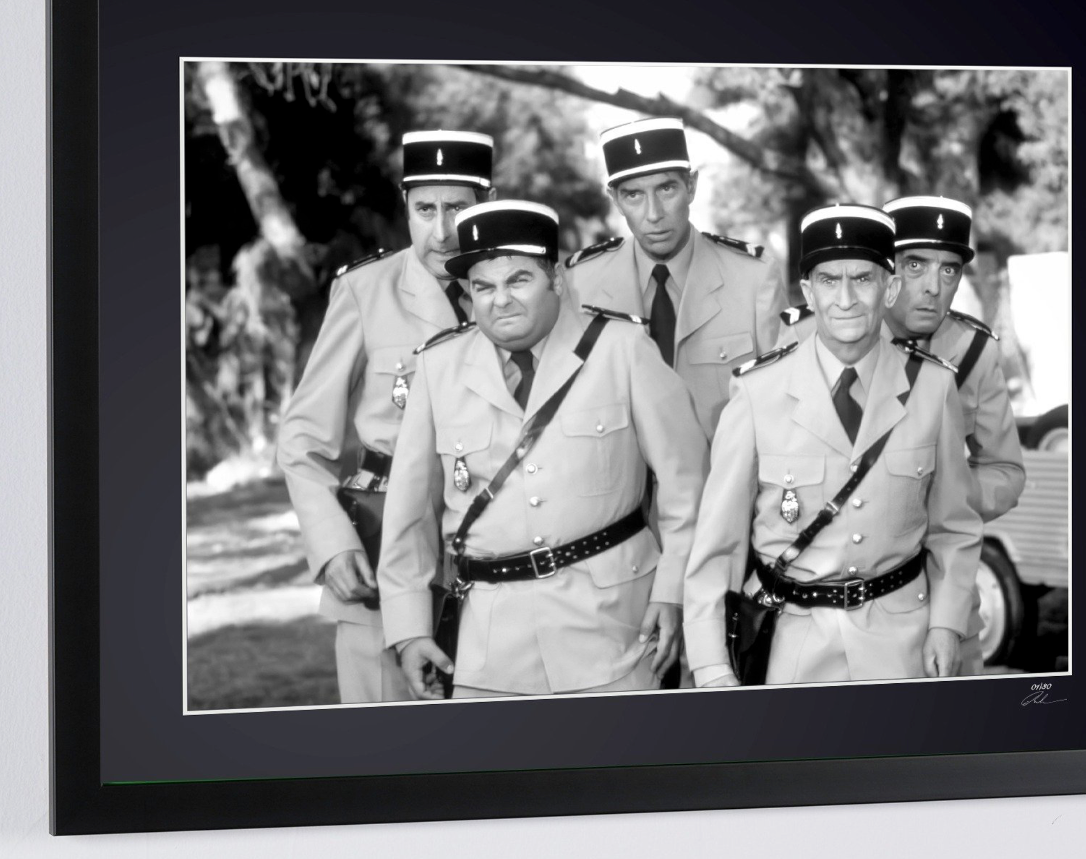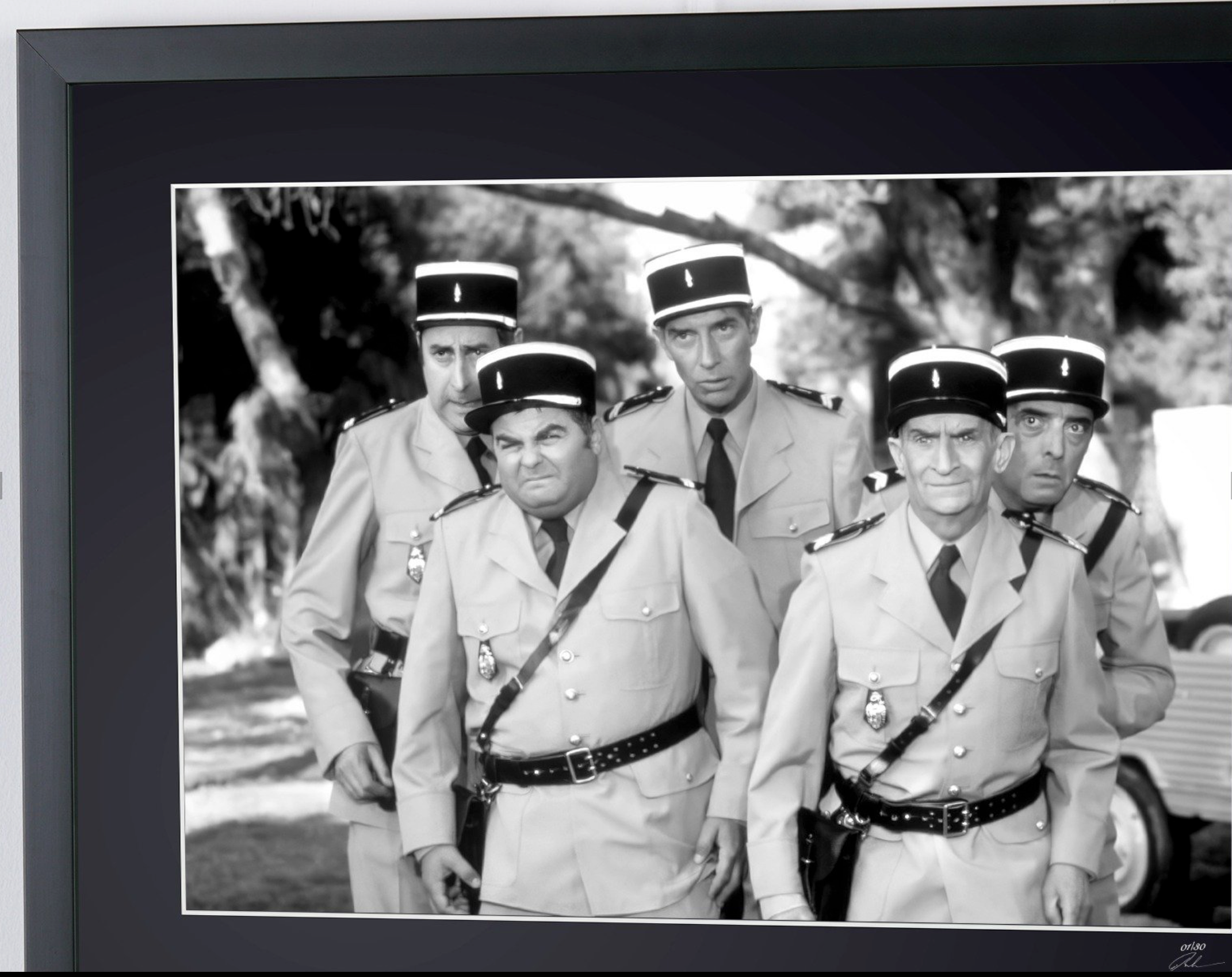 Photo encadrée de "Le Gendarme et les Extraterrestres 1979 - Louis de Funes as chef Ludovic Cruchot" — Tirage d'art noir et blanc sur papier Fine Art 70x50 cm