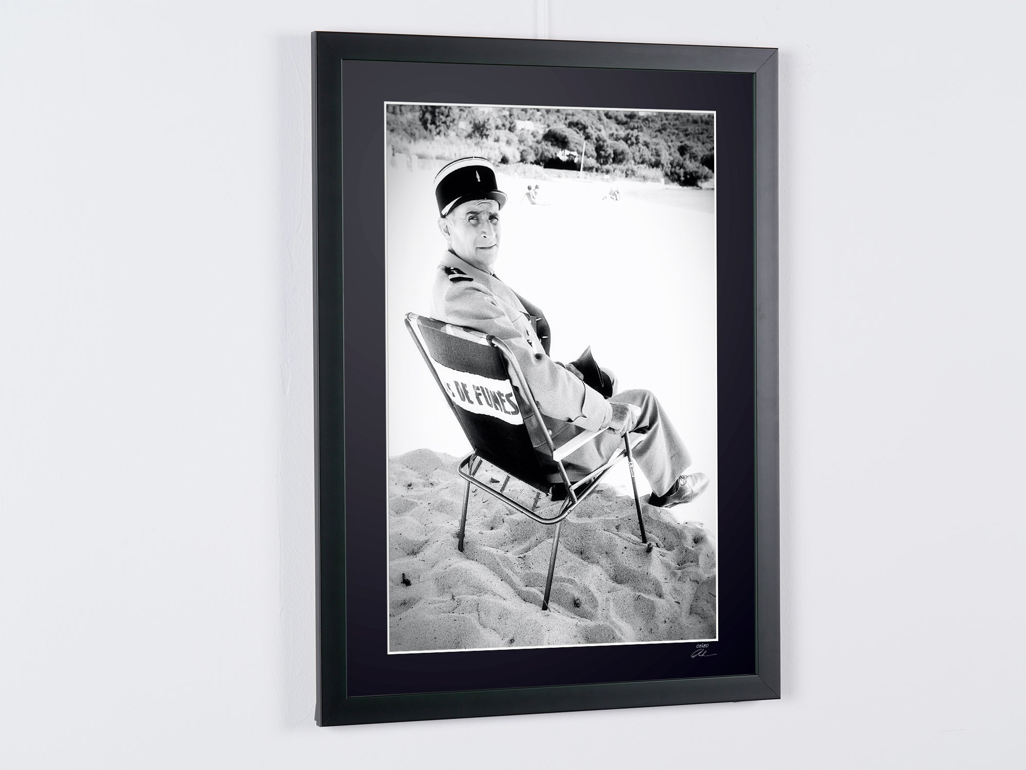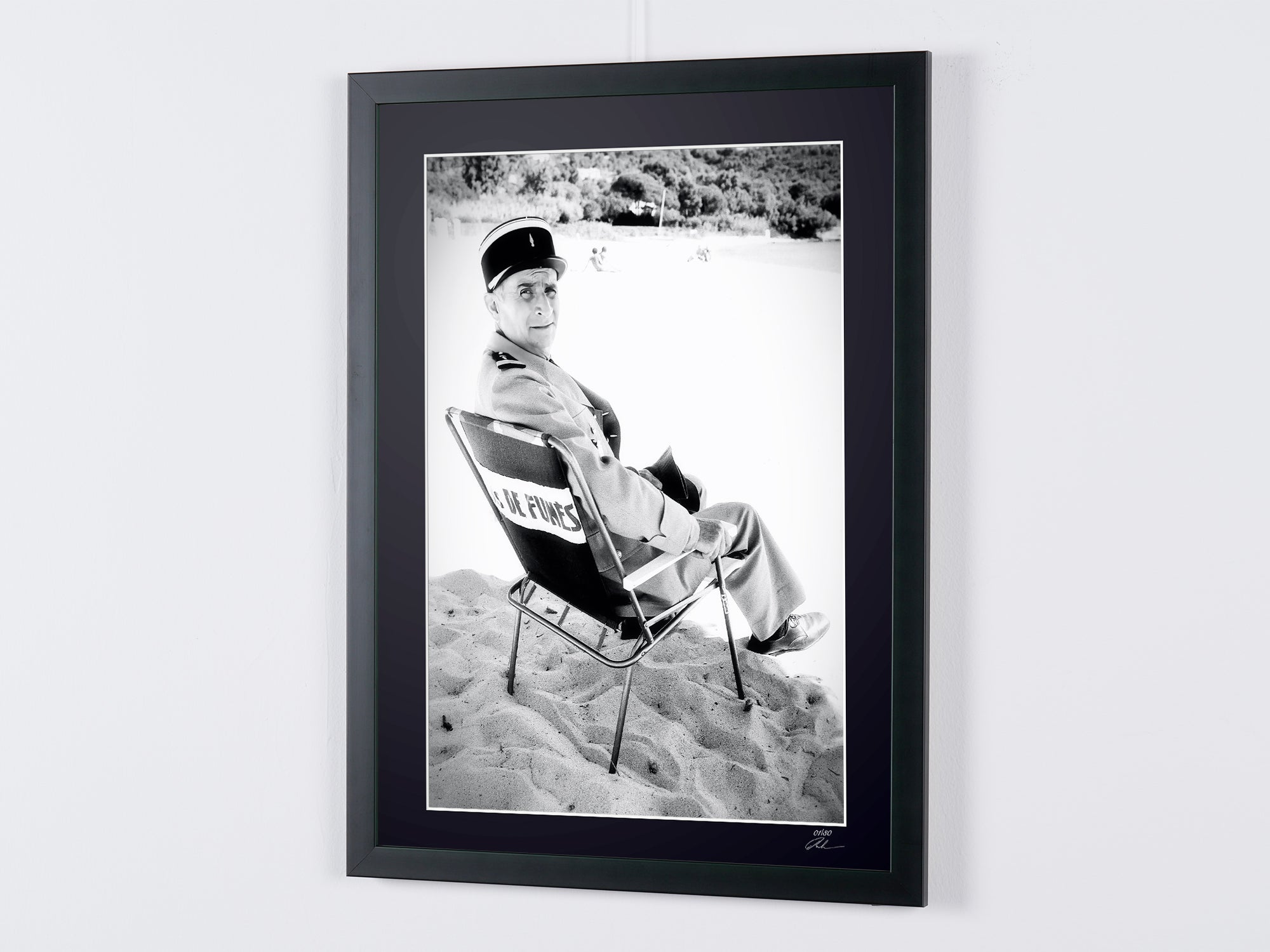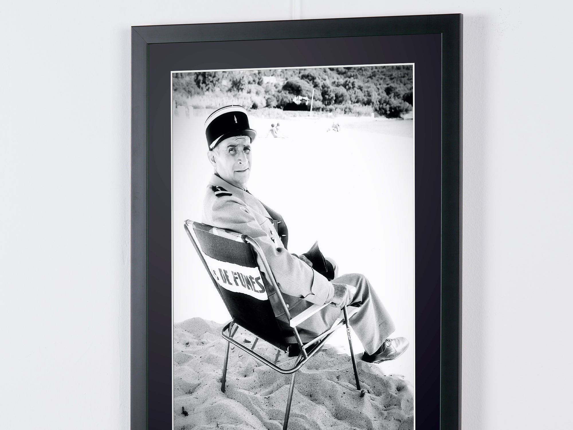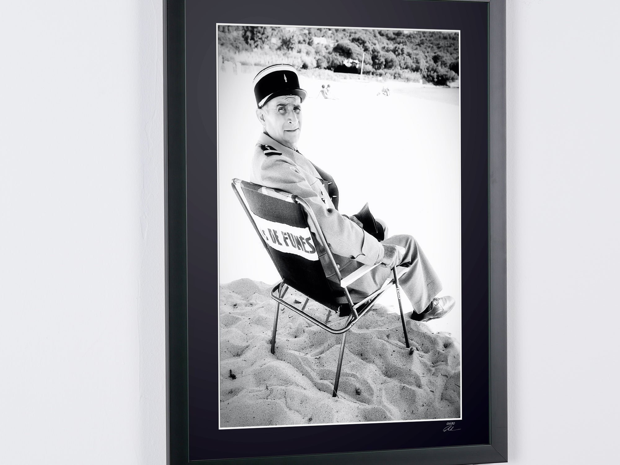 Photo encadrée de "Le Gendarme et les Extraterrestres 1979 - Louis de Funès as Ludovic Cruchot" — Tirage d'art noir et blanc sur papier Fine Art 70x50 cm
