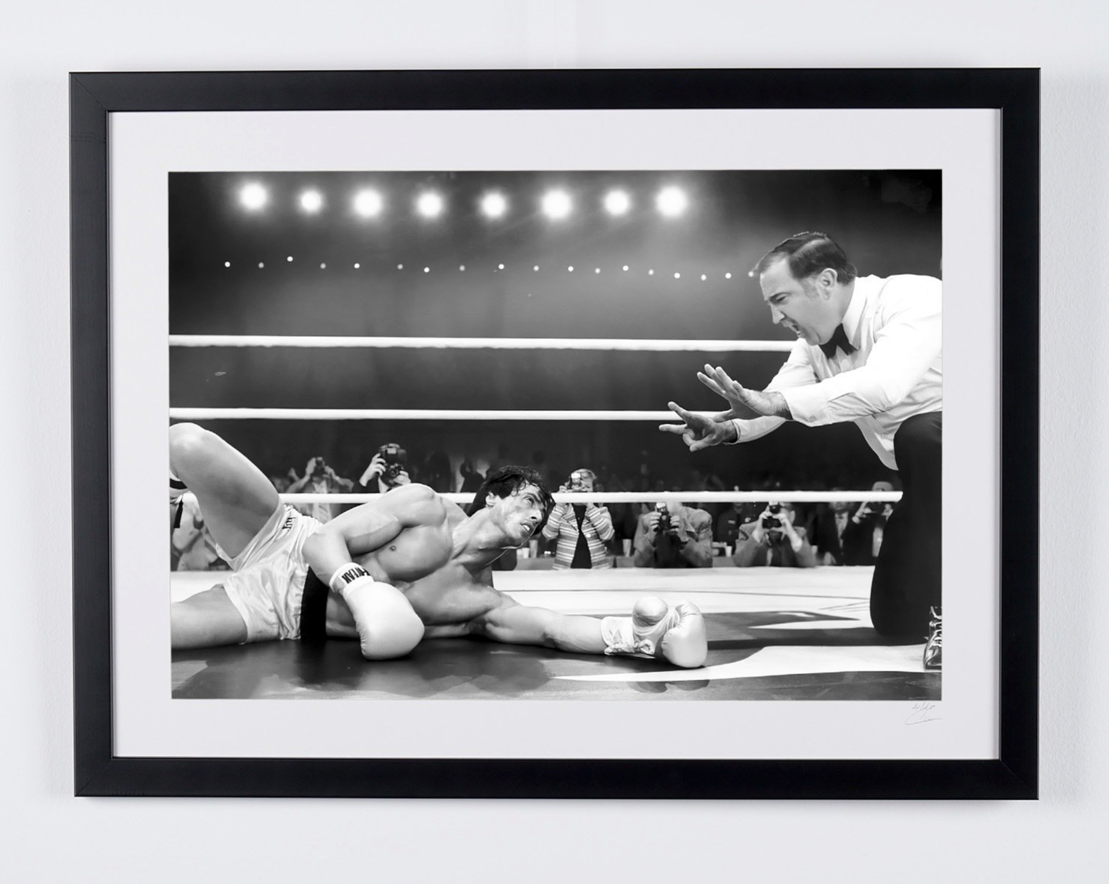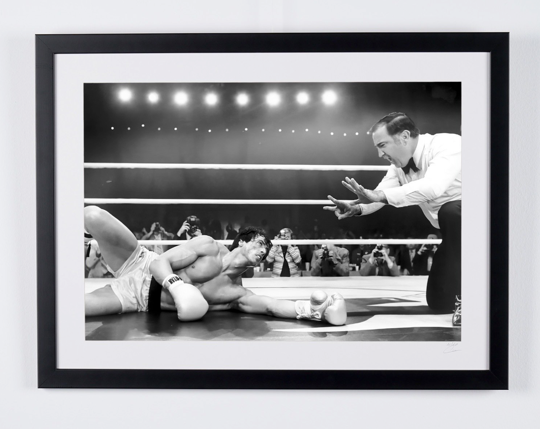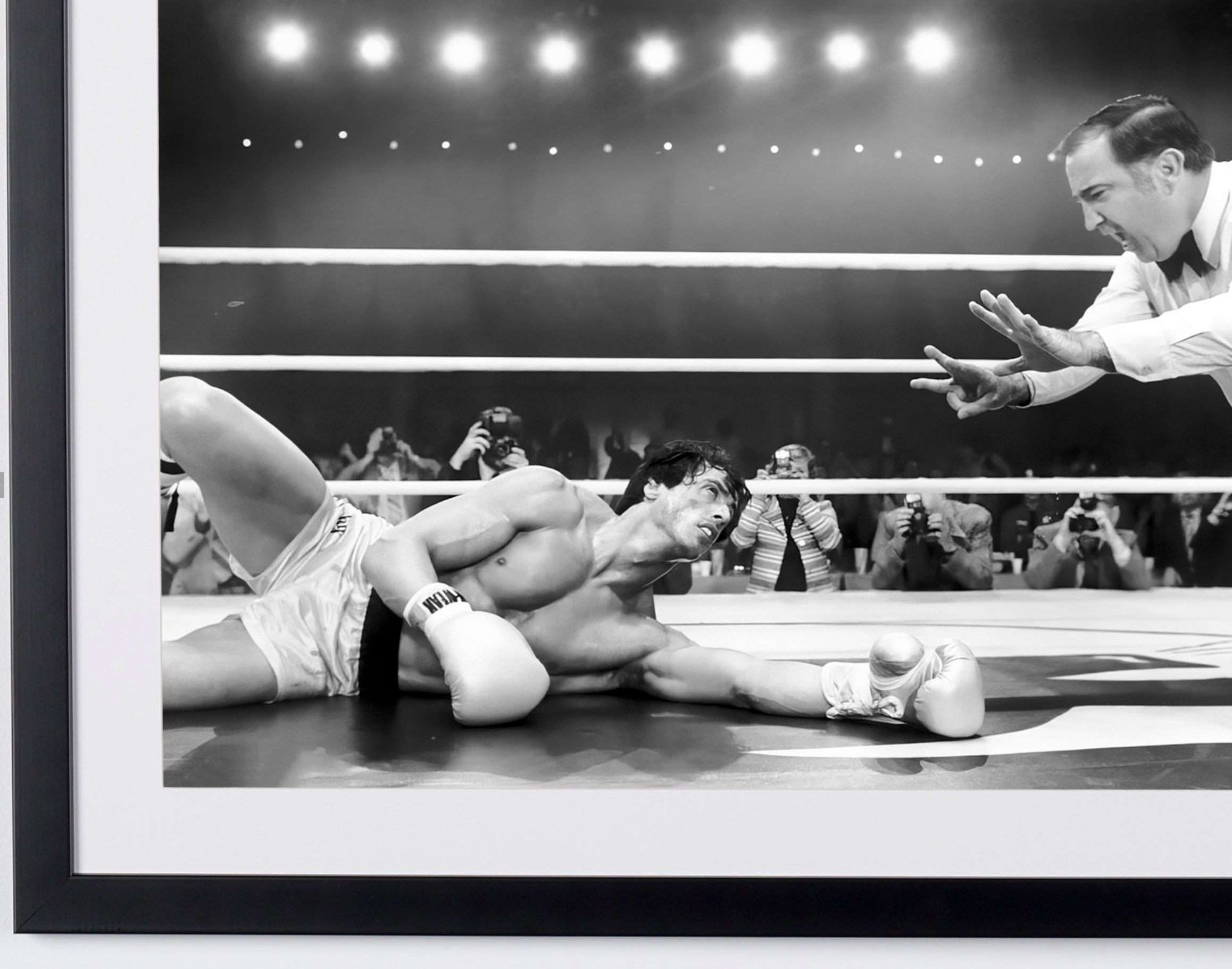 Photo encadrée de "Rocky III (1982) - Sylvester Stallone as Rocky Balboa" — Tirage d'art noir et blanc sur papier Fine Art 70x50 cm
