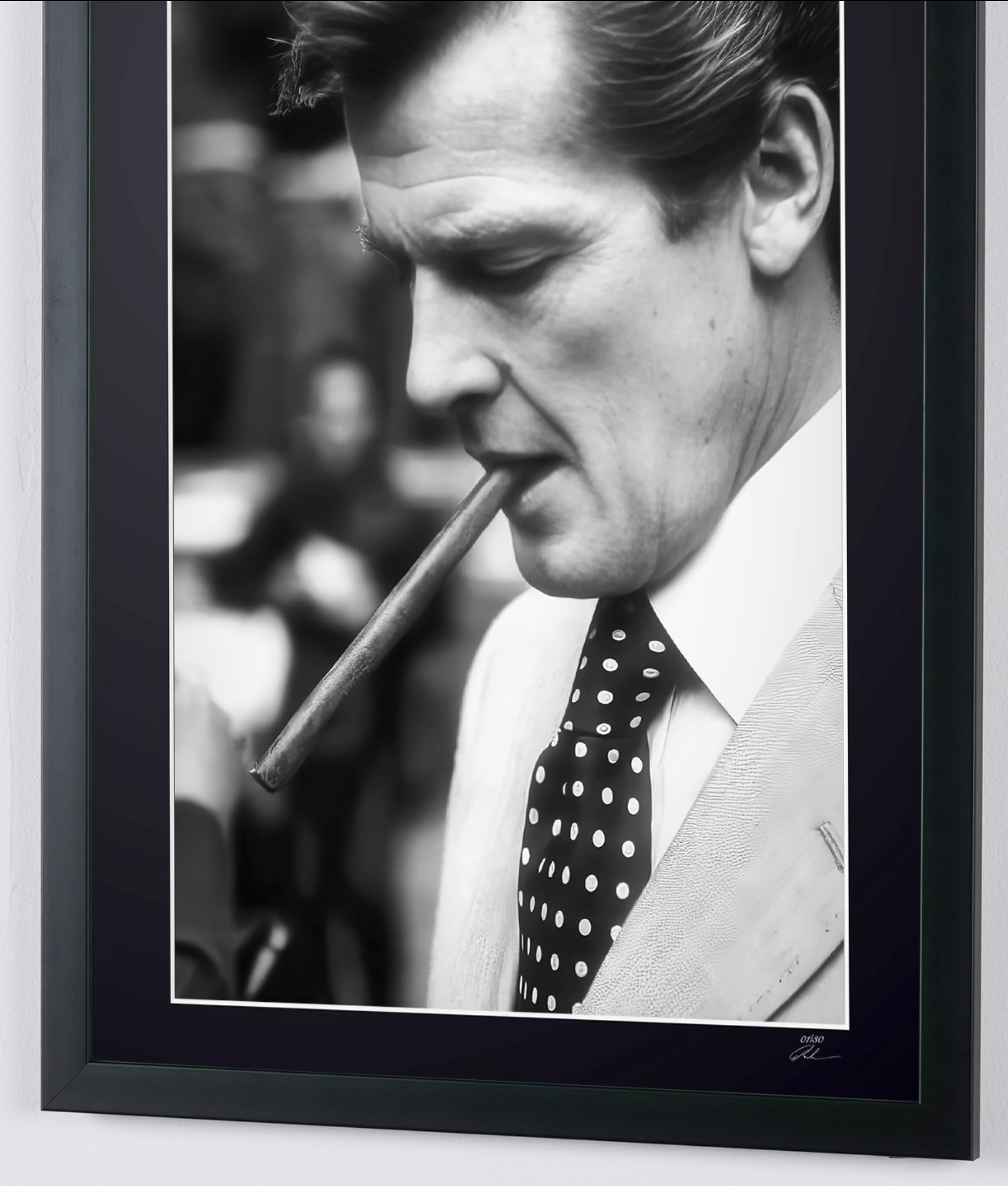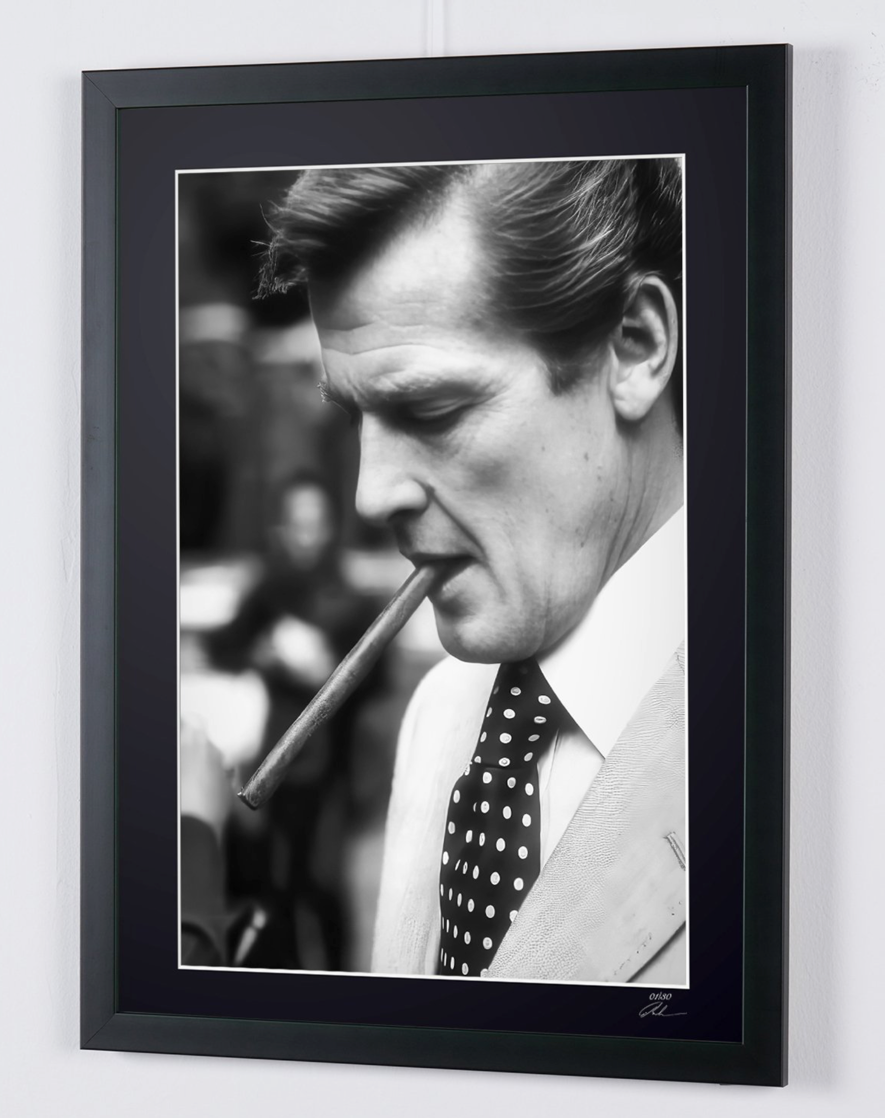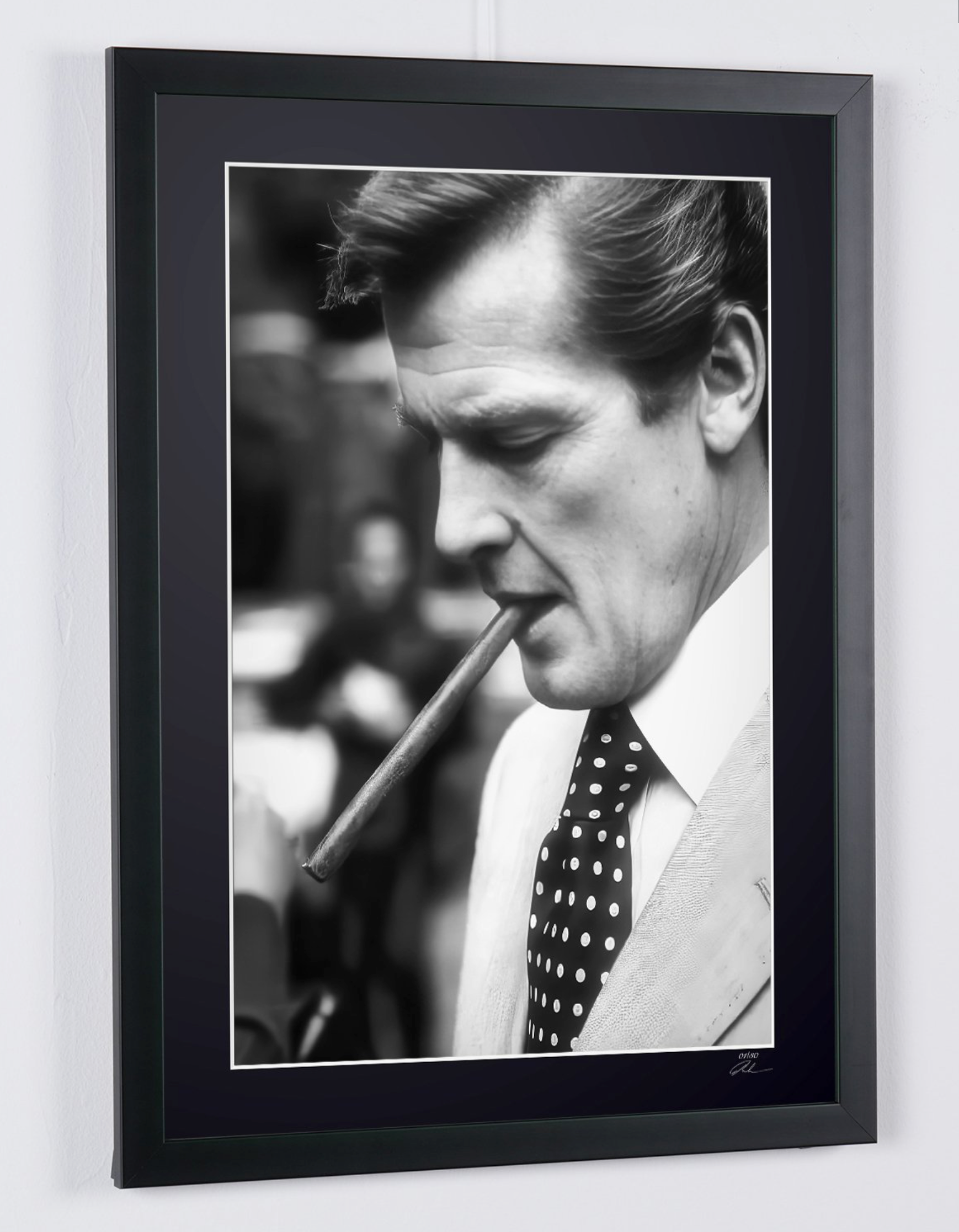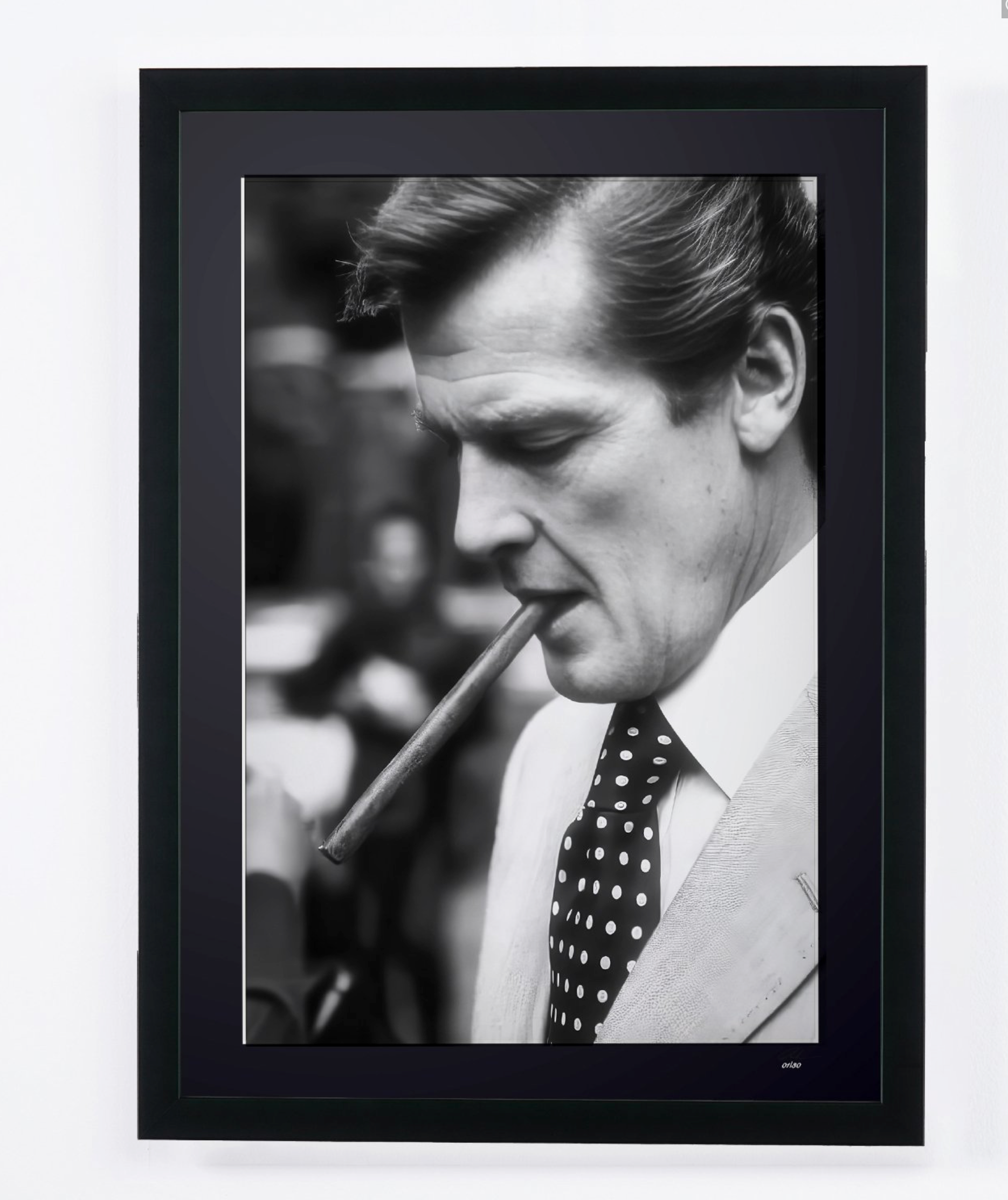 Photo encadrée de "Roger Moore - Iconic" — Tirage d'art noir et blanc sur papier Fine Art 70x50 cm