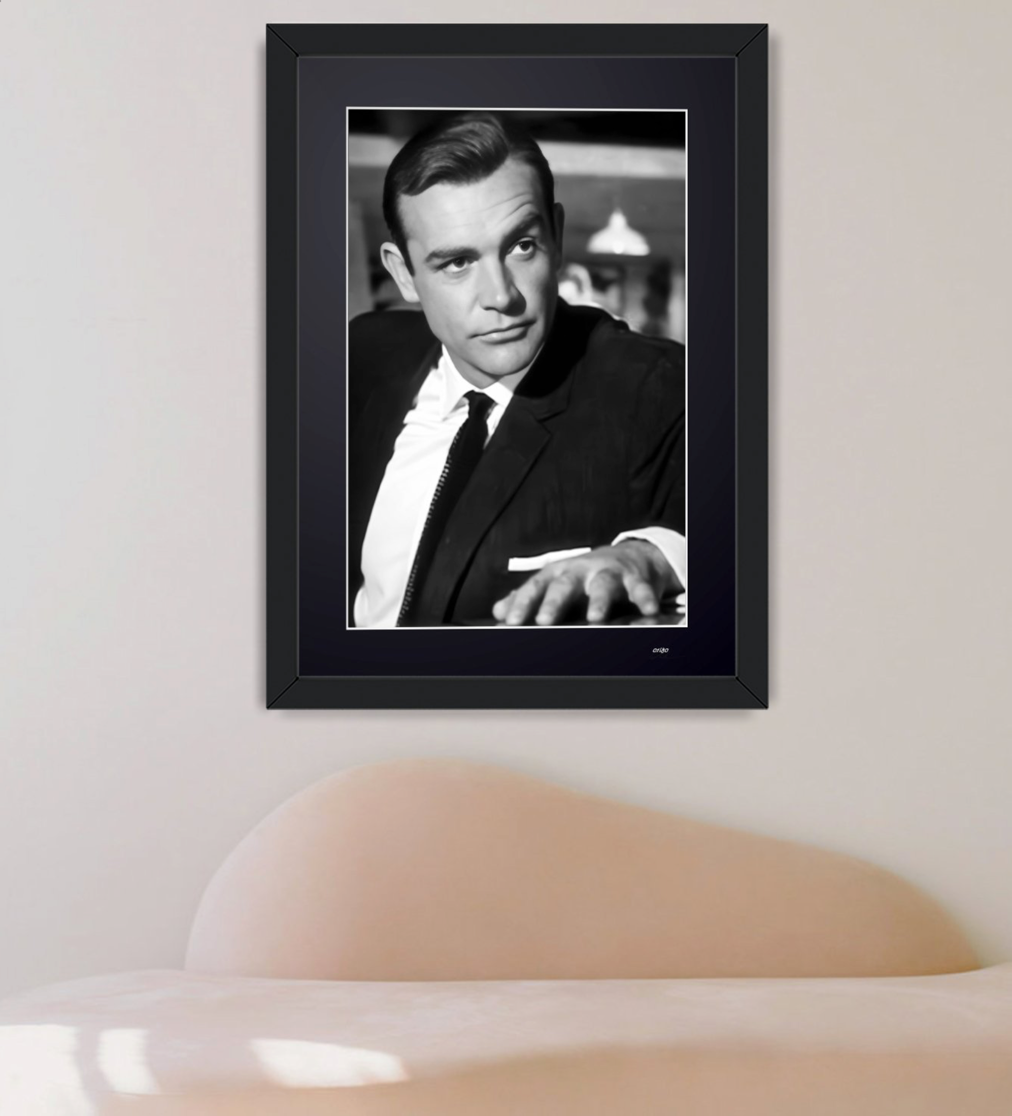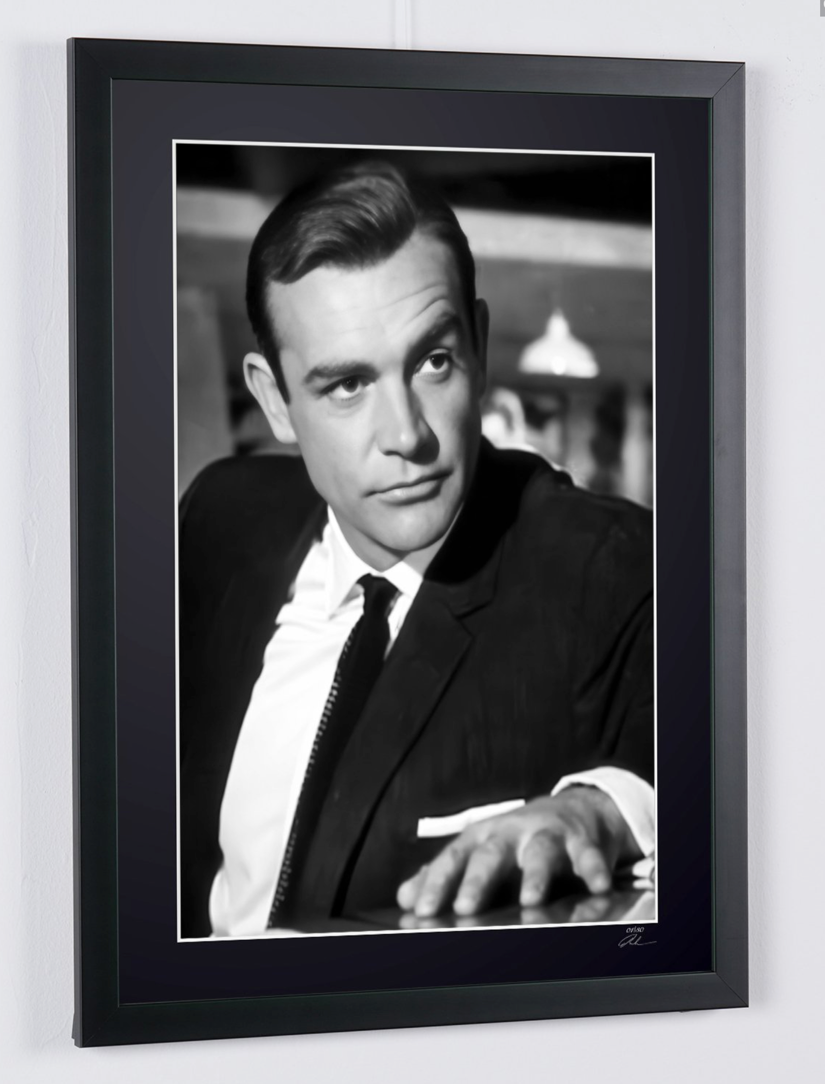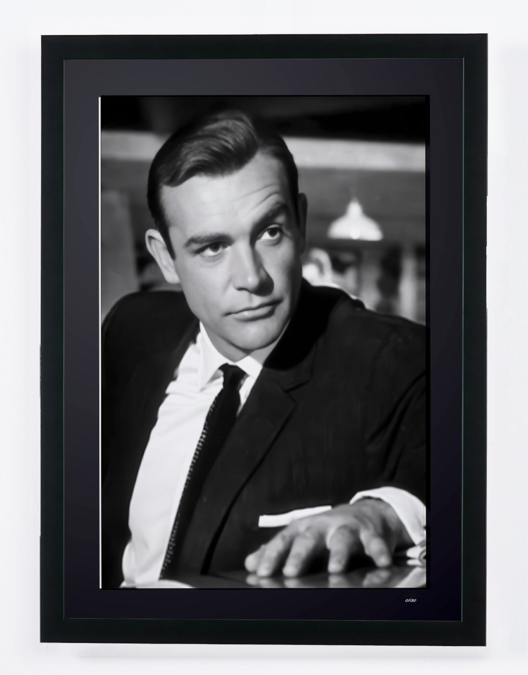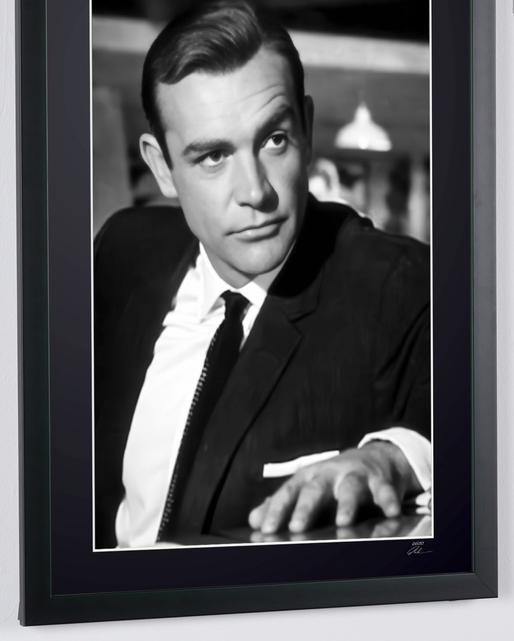 Photo encadrée de "Sean Connery - James Bond 007 - Goldfinger 1965" — Tirage d'art noir et blanc sur papier Fine Art 70x50 cm
