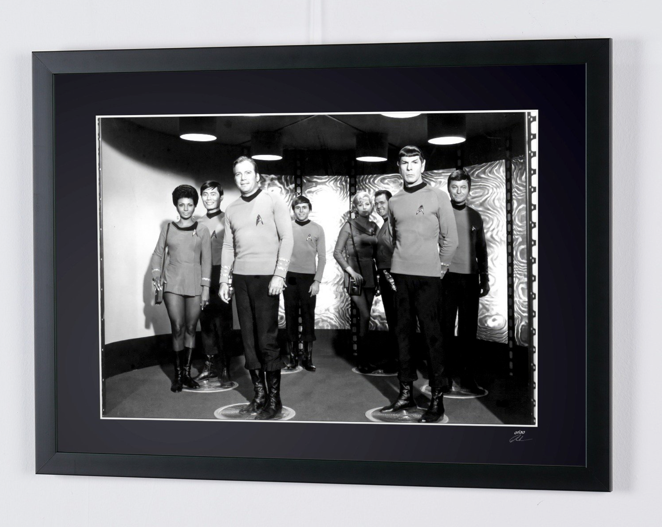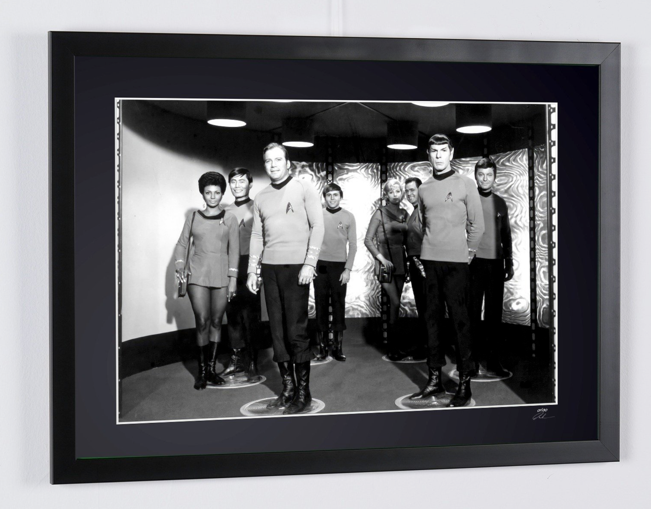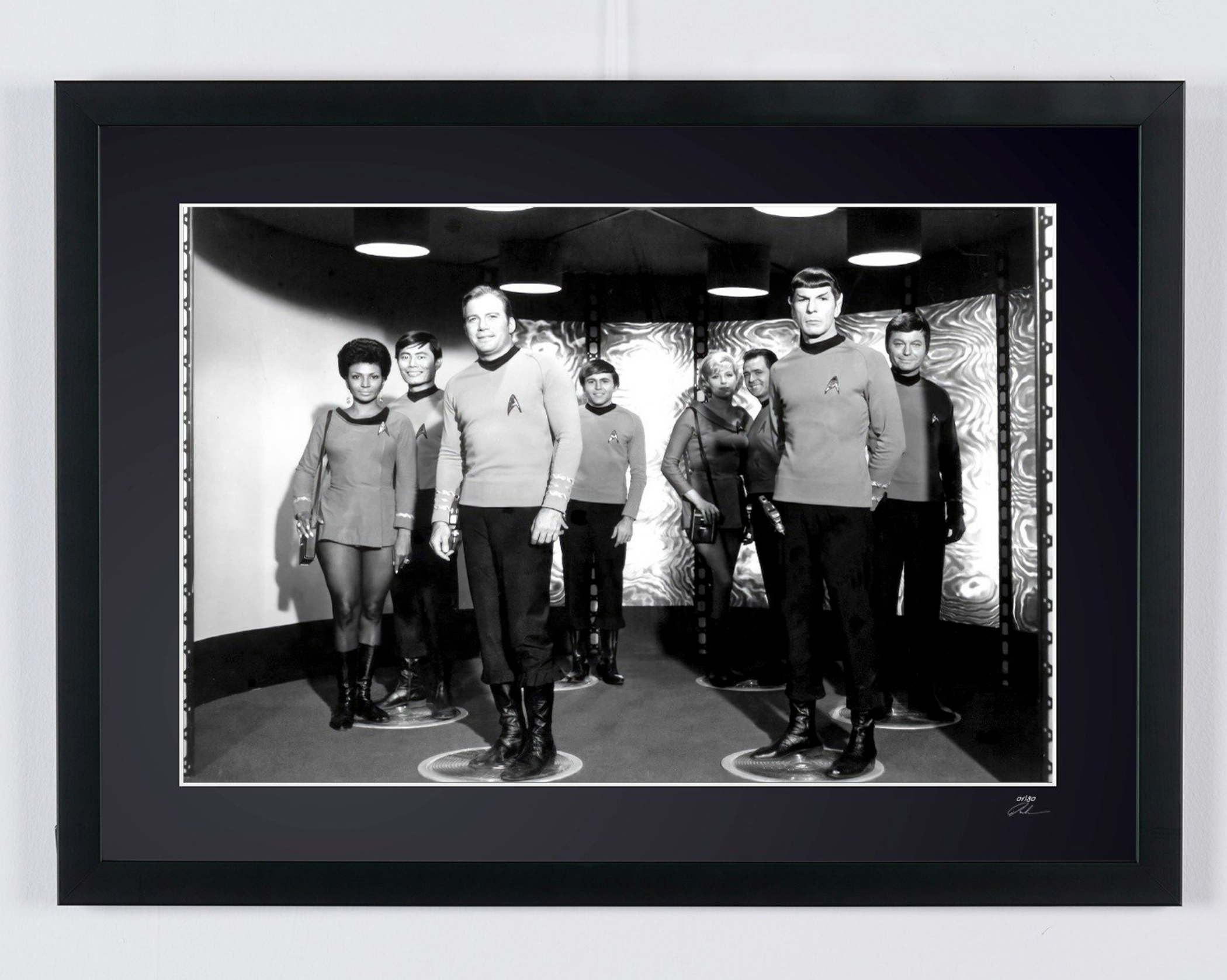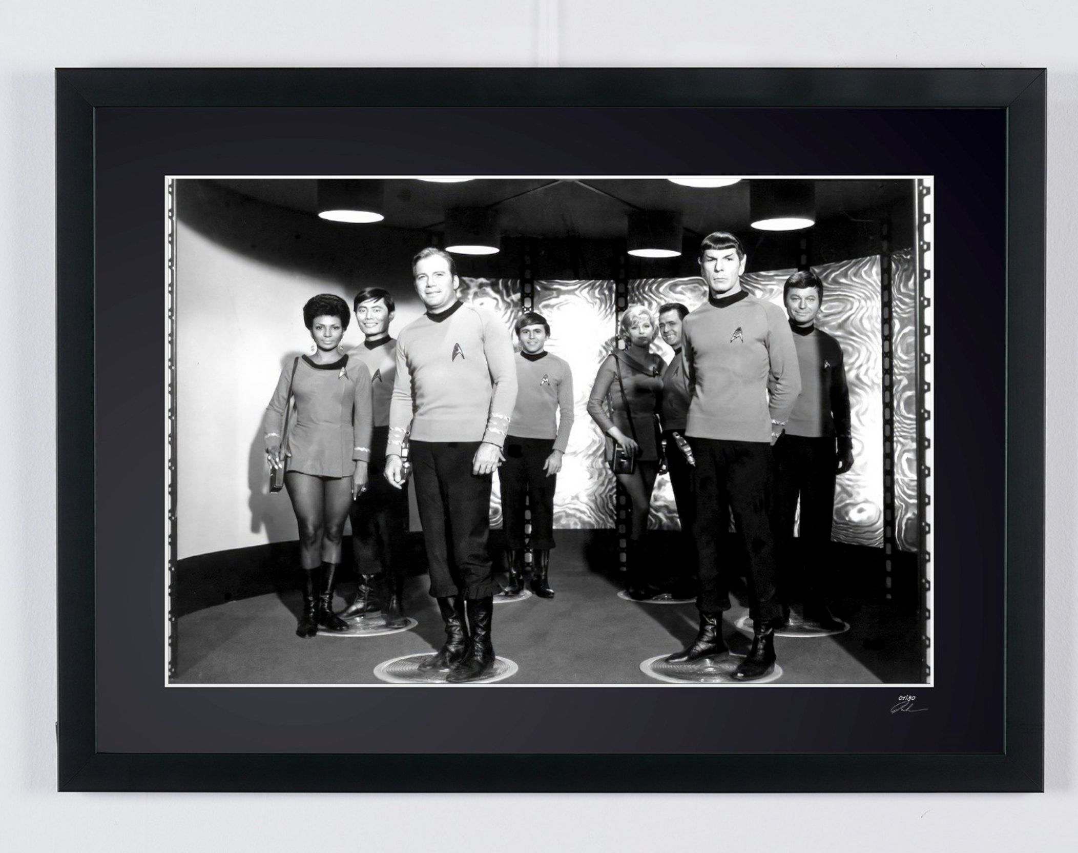 Photo encadrée de "Star Trek - Classic TV - Leonard Nimoy, George Takei, Walter Koenig, William Shatner, DeForest" — Tirage d'art noir et blanc sur papier Fine Art 70x50 cm