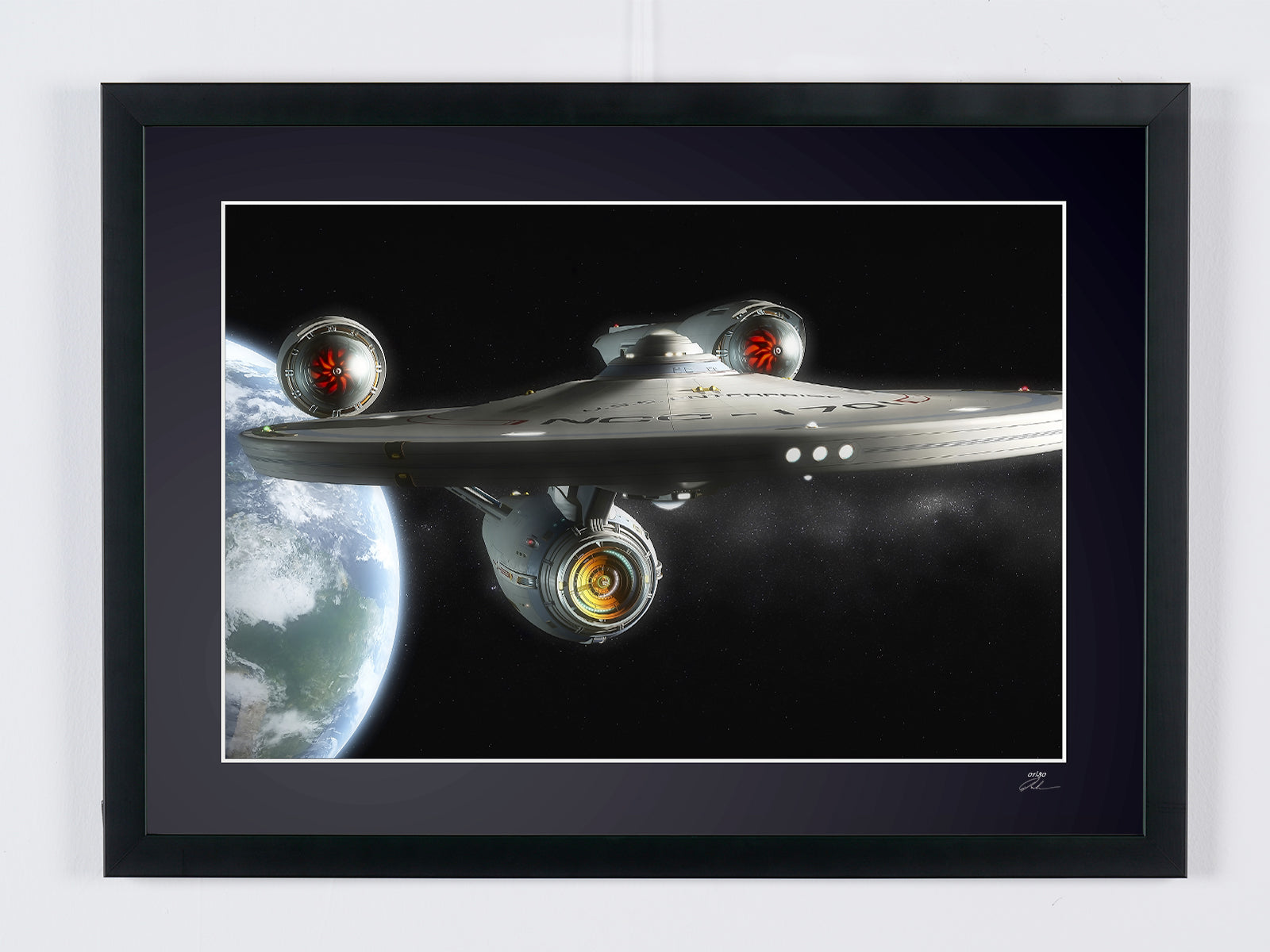 Photo encadrée de "Star Trek - USS Enterprise NCC" — Tirage d'art noir et blanc sur papier Fine Art 70x50 cm