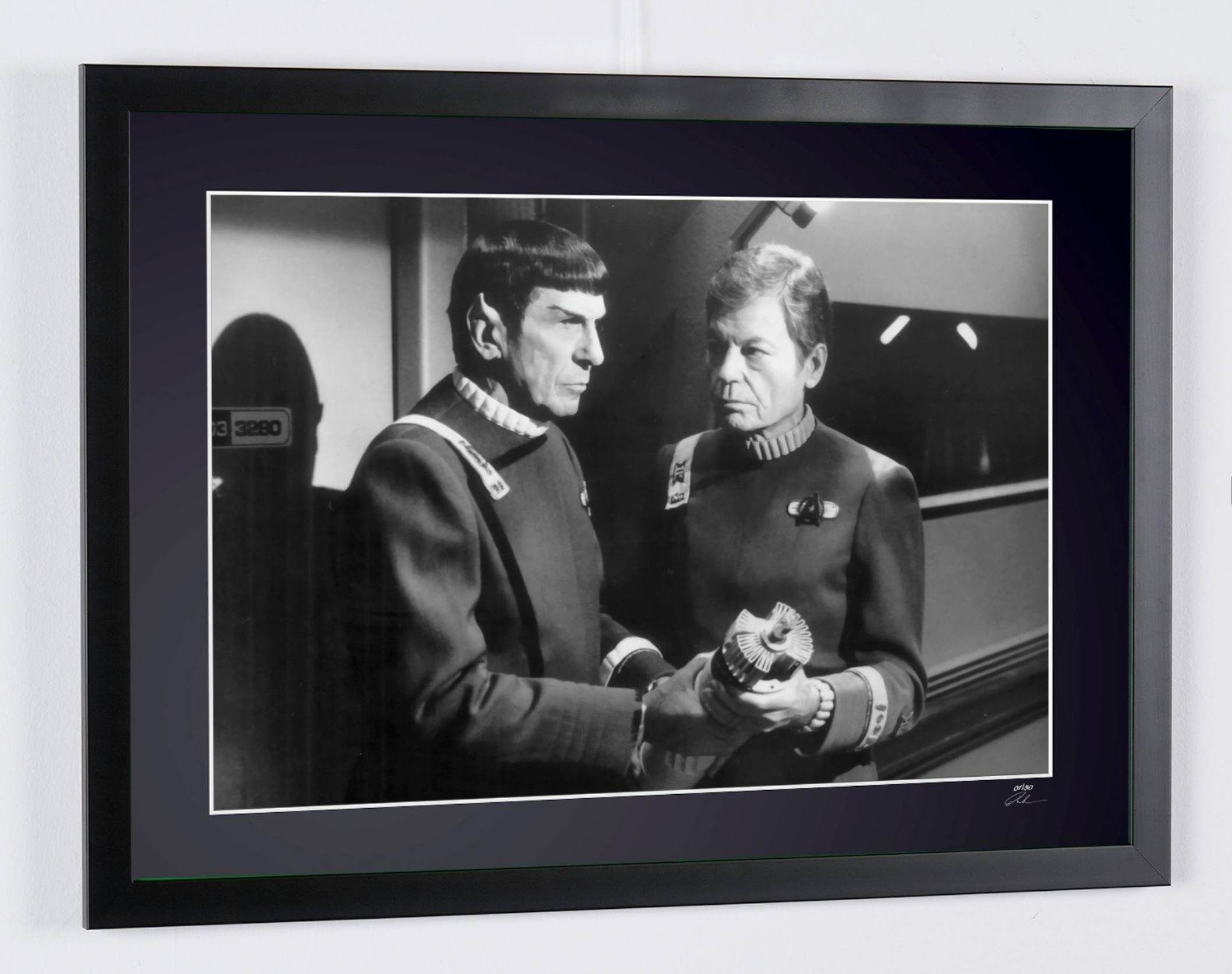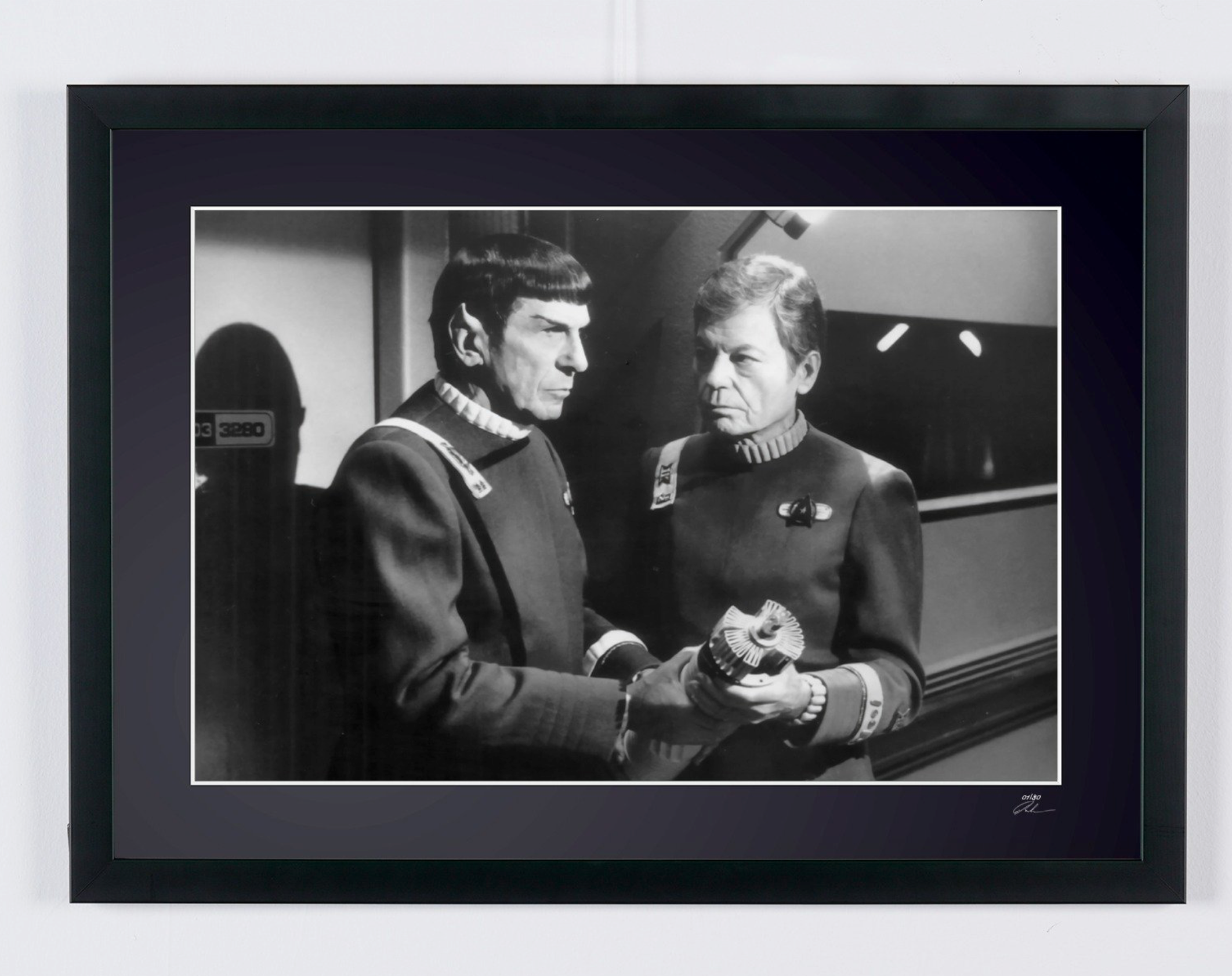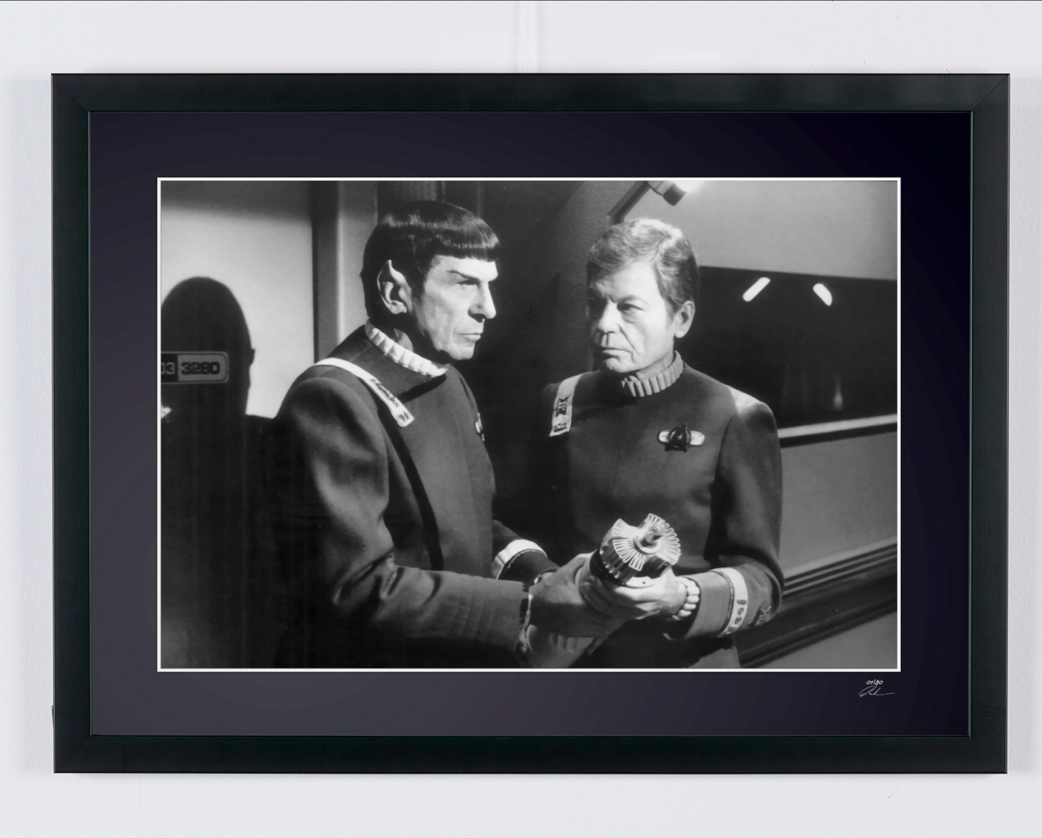 Photo encadrée de "Star Trek VI: The Undiscovered Country - Leonard Nimoy as Captain Spock and DeForest Kelley" — Tirage d'art noir et blanc sur papier Fine Art 70x50 cm
