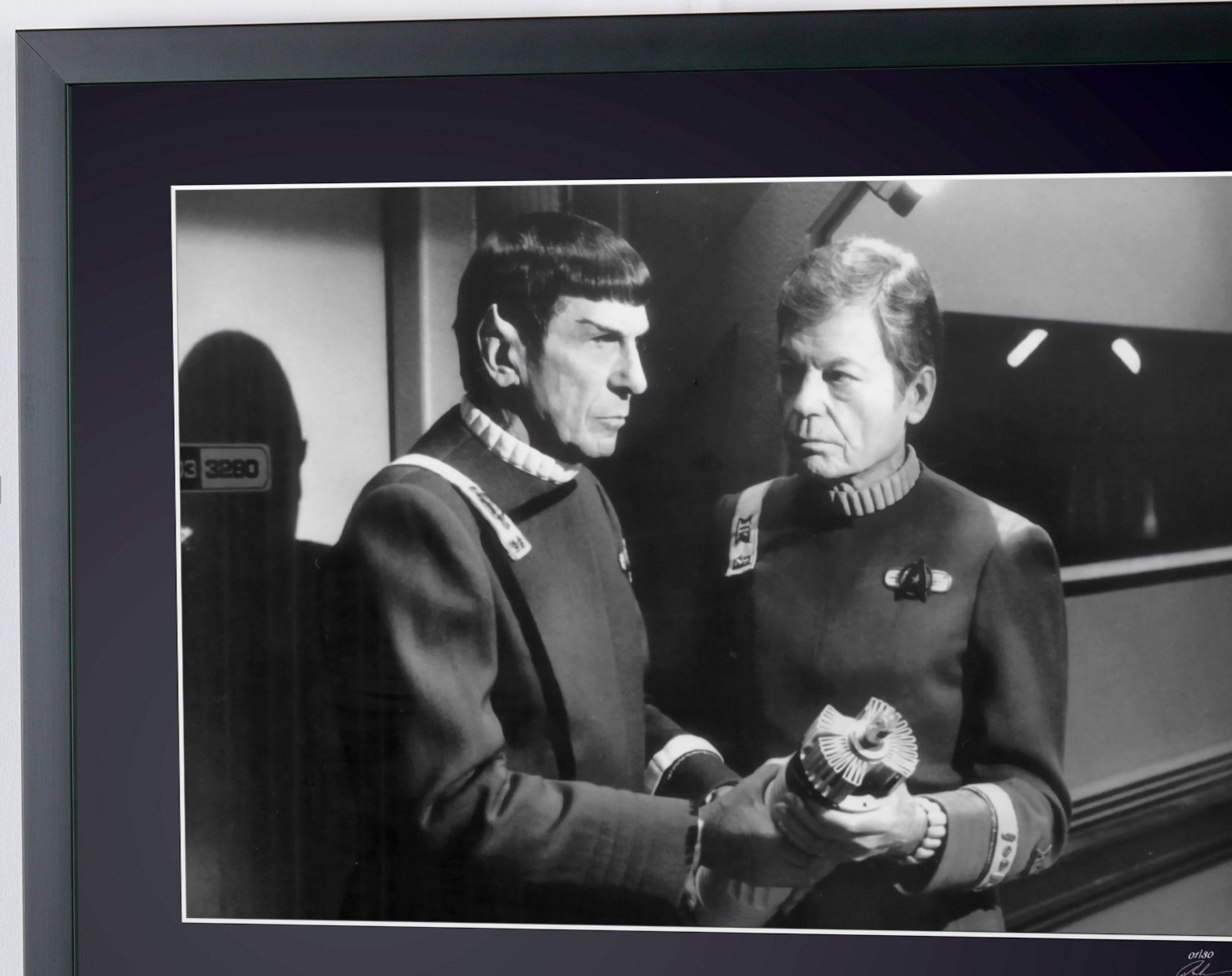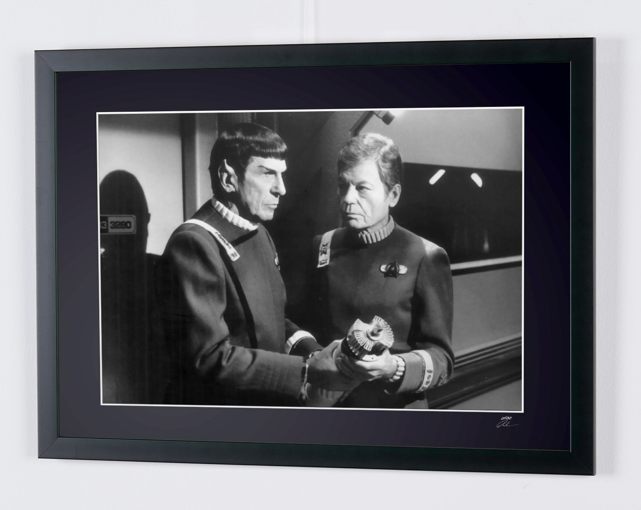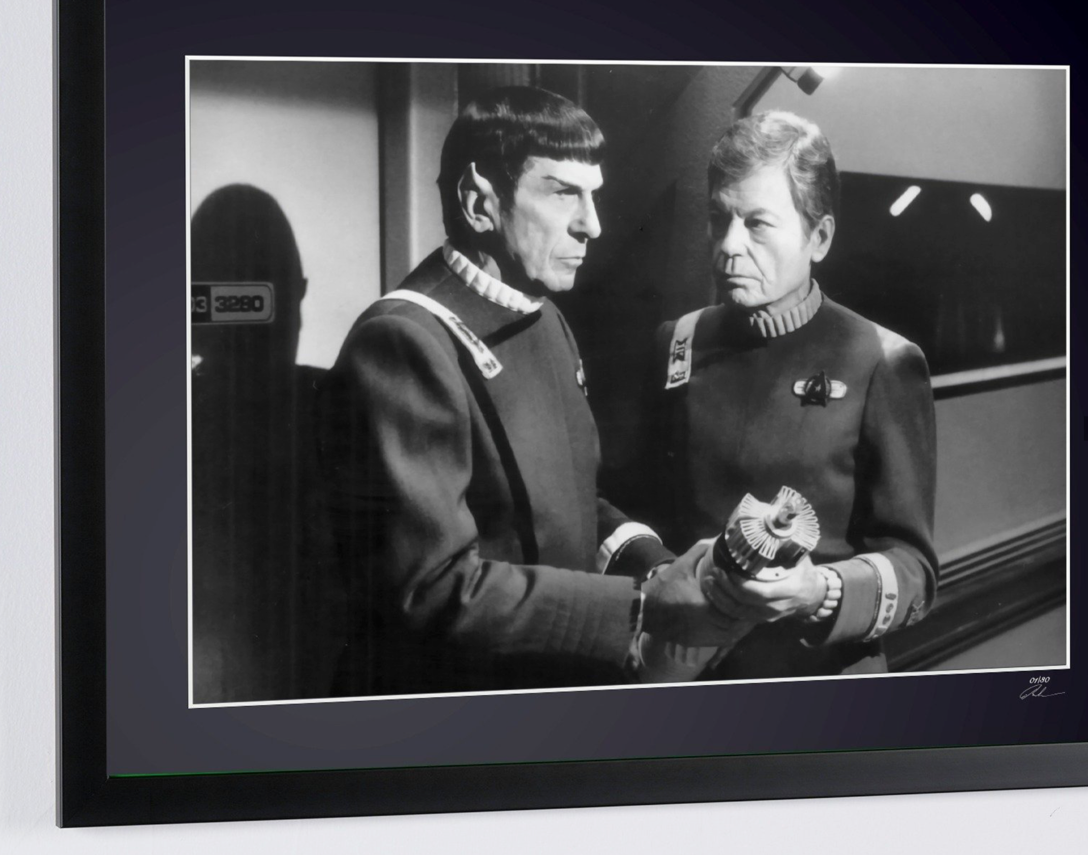 Photo encadrée de "Star Trek VI: The Undiscovered Country - Leonard Nimoy as Captain Spock and DeForest Kelley" — Tirage d'art noir et blanc sur papier Fine Art 70x50 cm