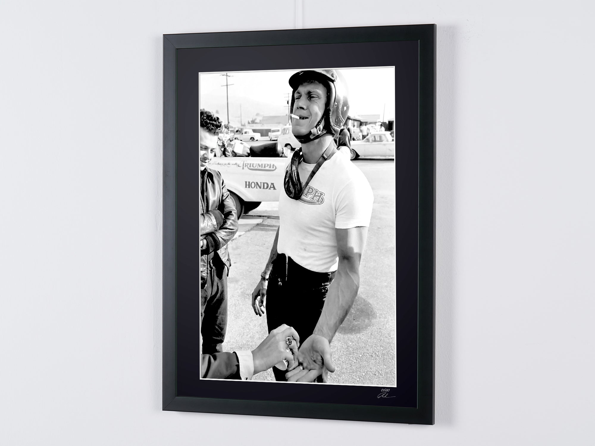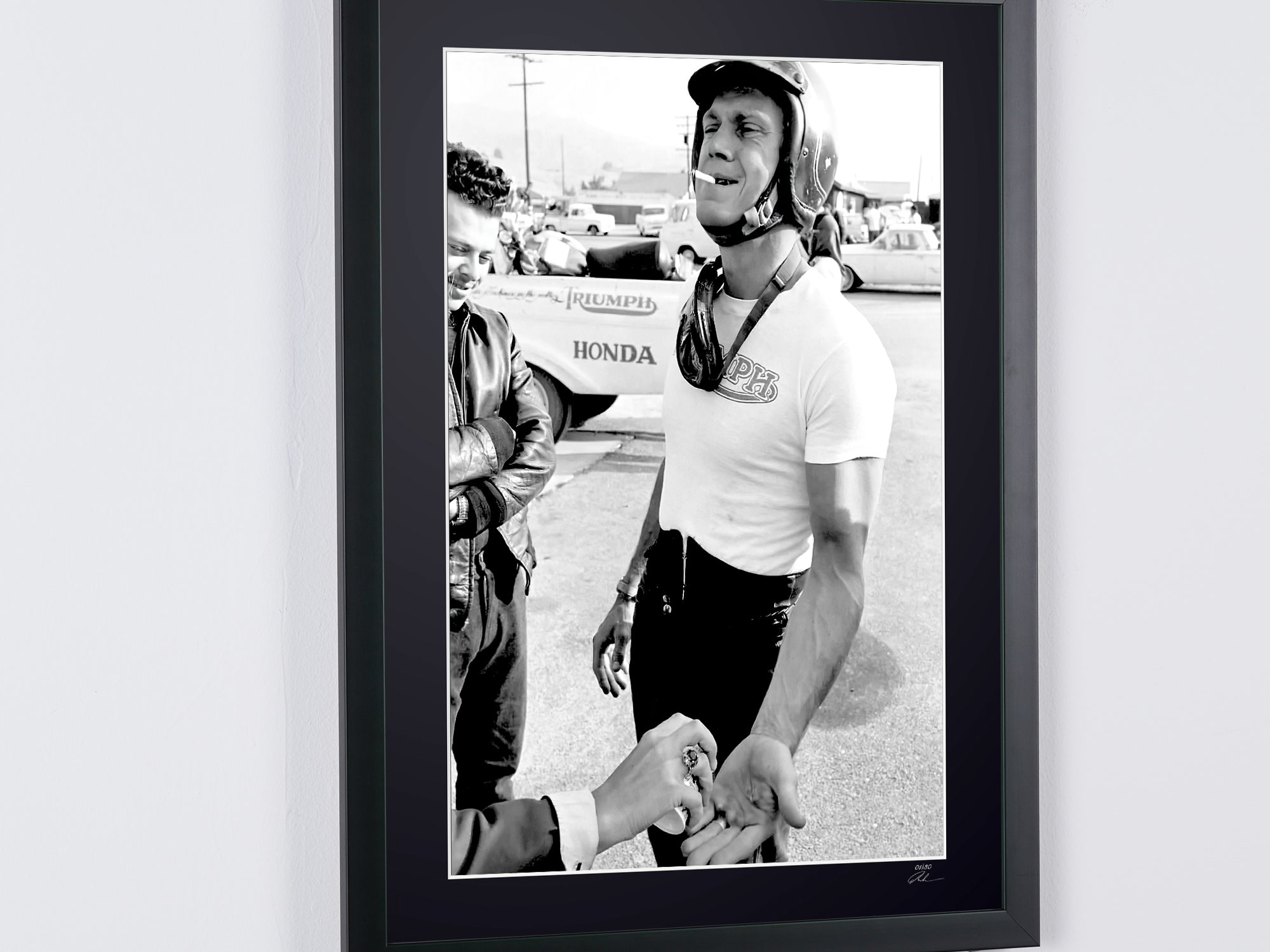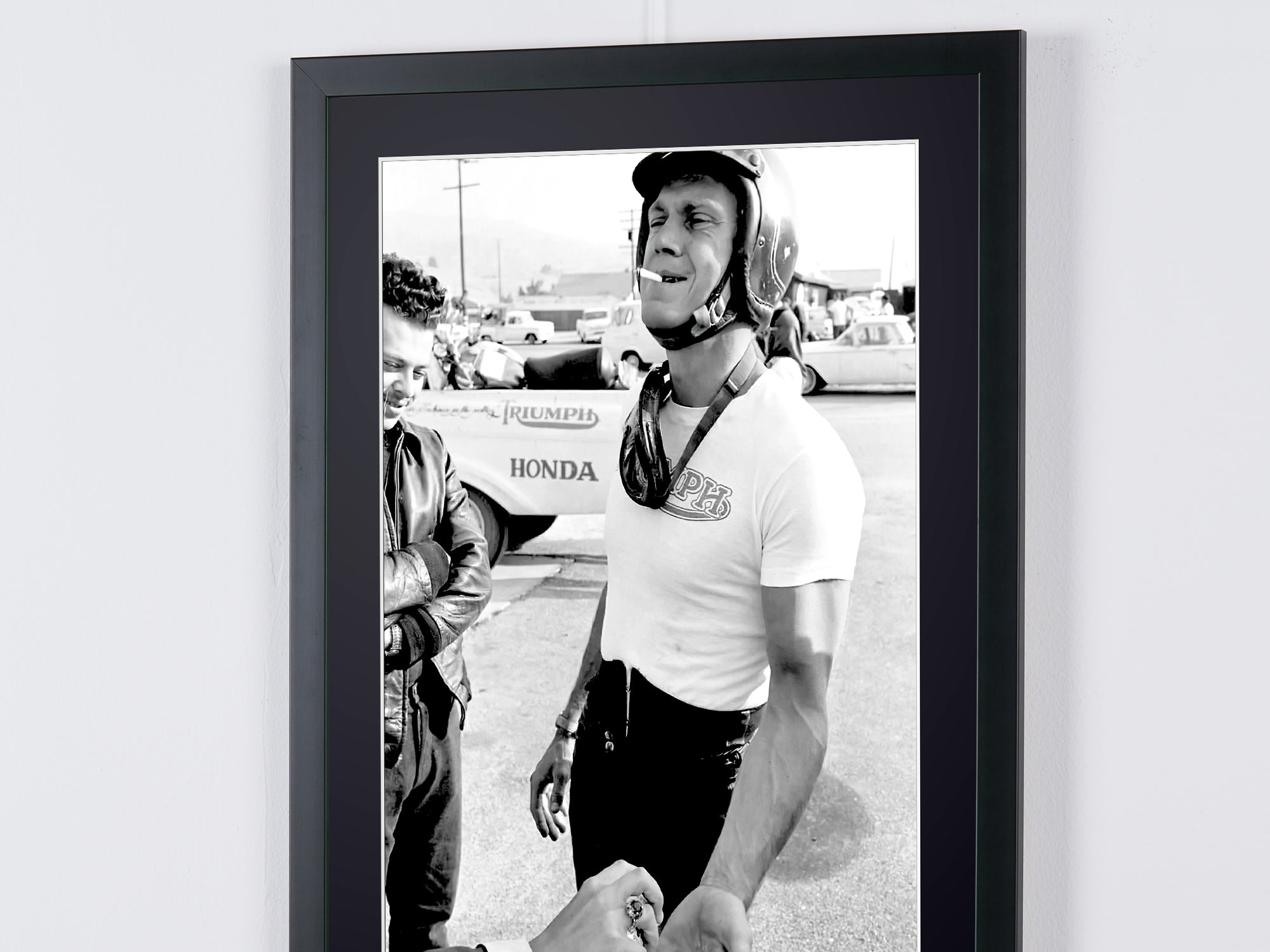 Photo encadrée de "Steve McQueen 1963" — Tirage d'art noir et blanc sur papier Fine Art 70x50 cm
