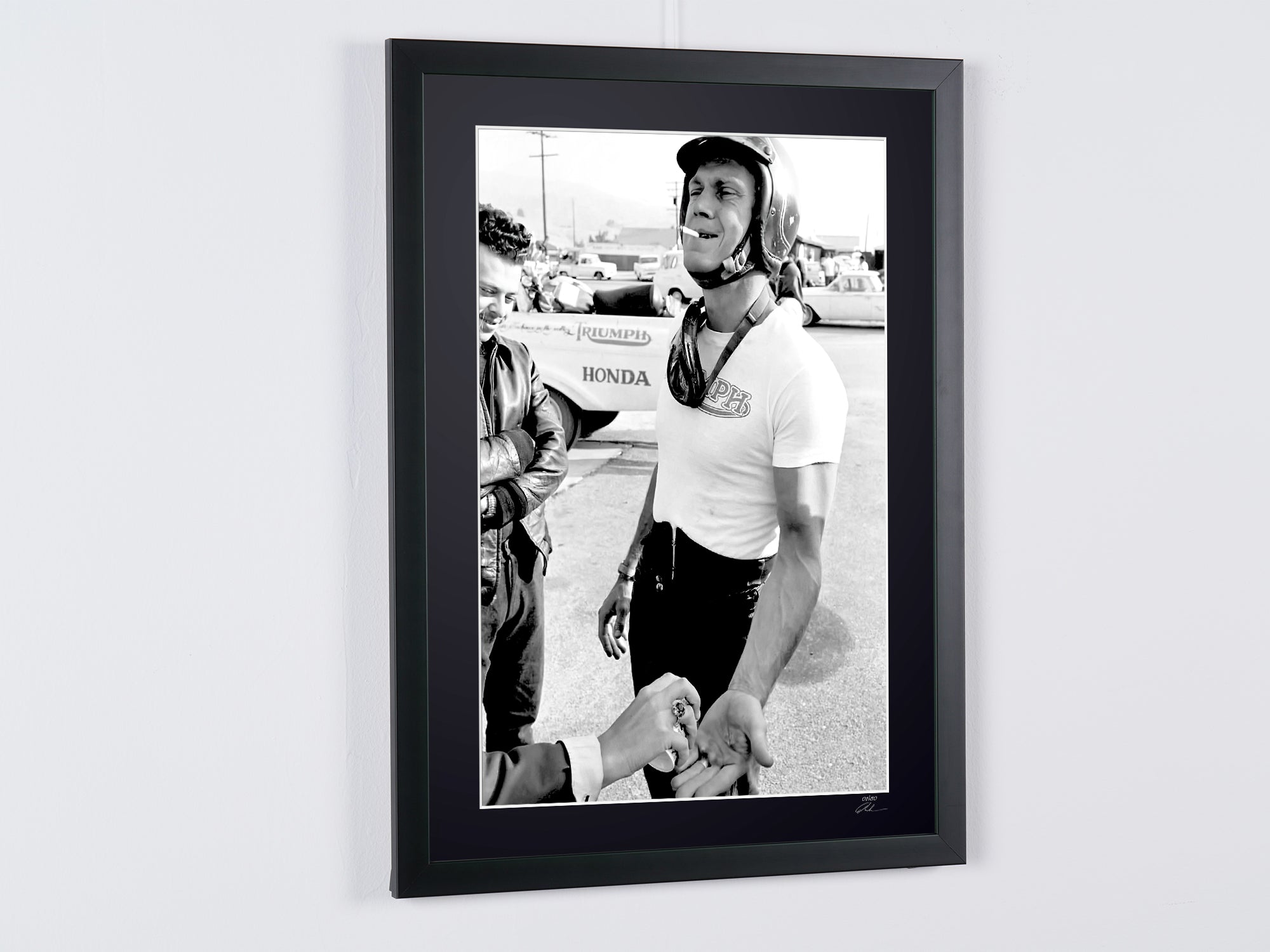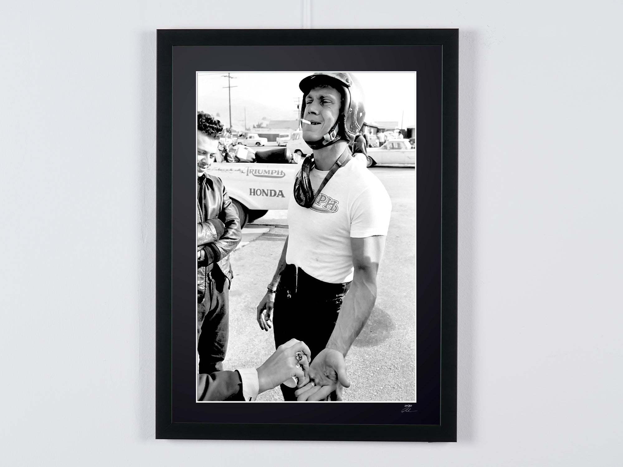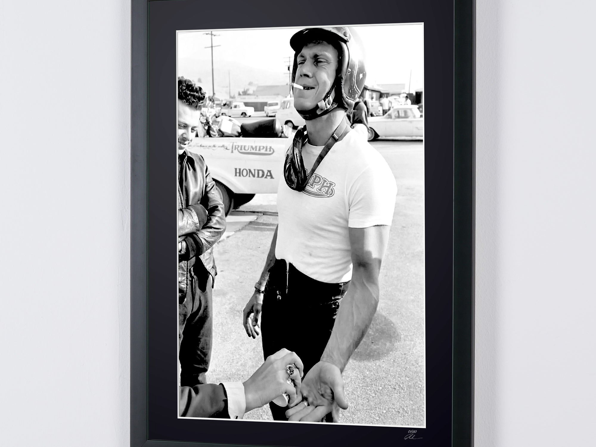 Photo encadrée de "Steve McQueen 1963" — Tirage d'art noir et blanc sur papier Fine Art 70x50 cm