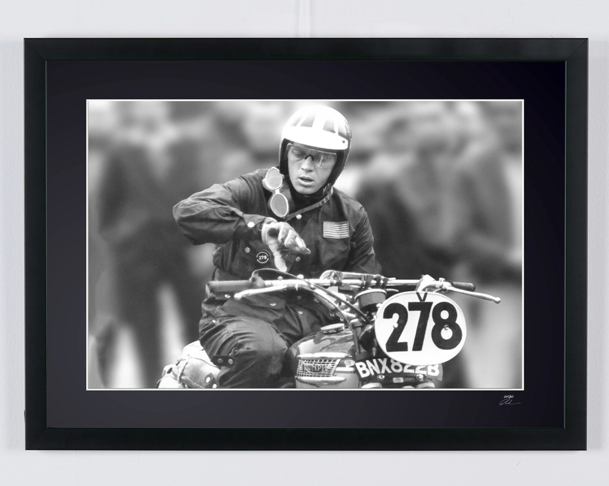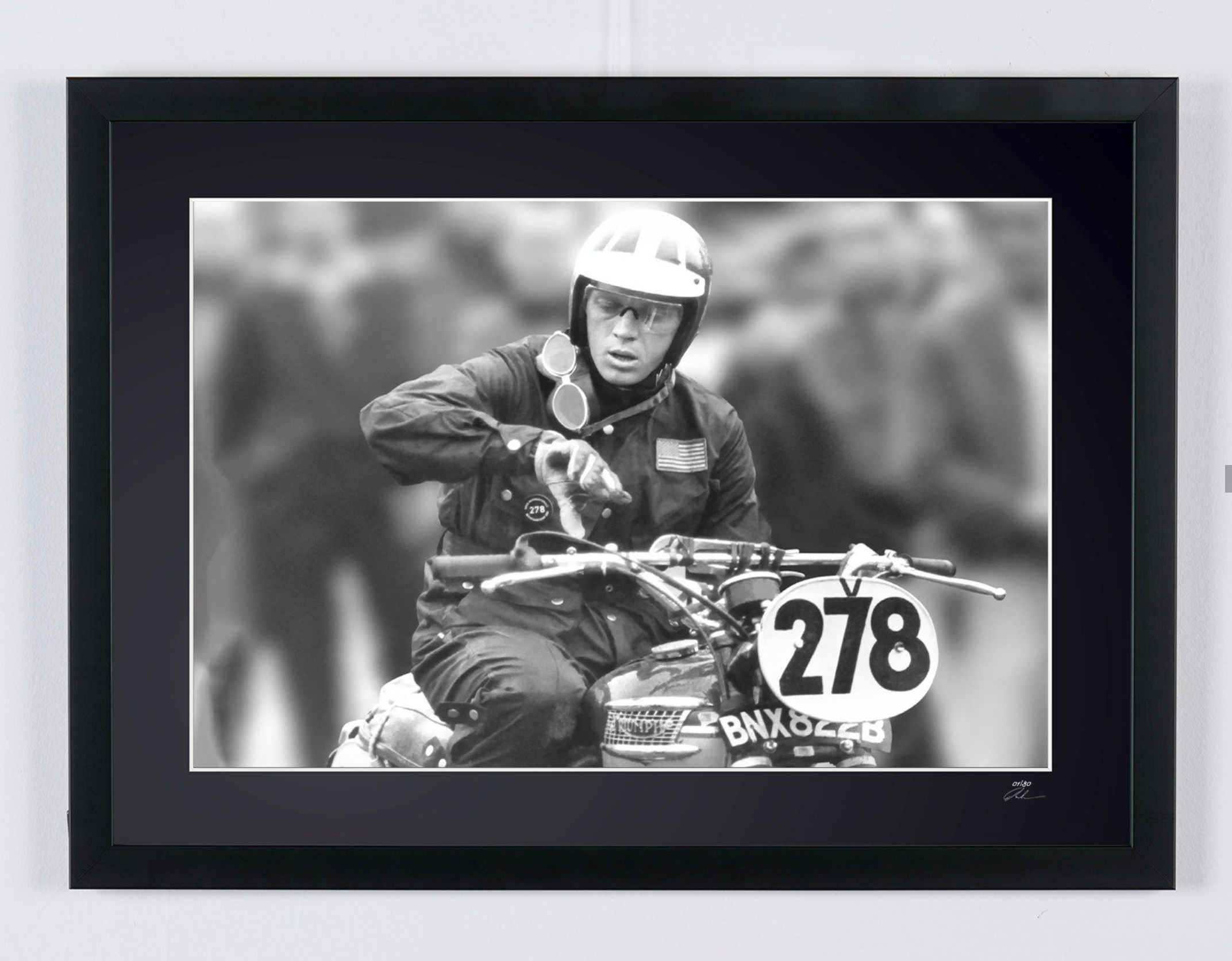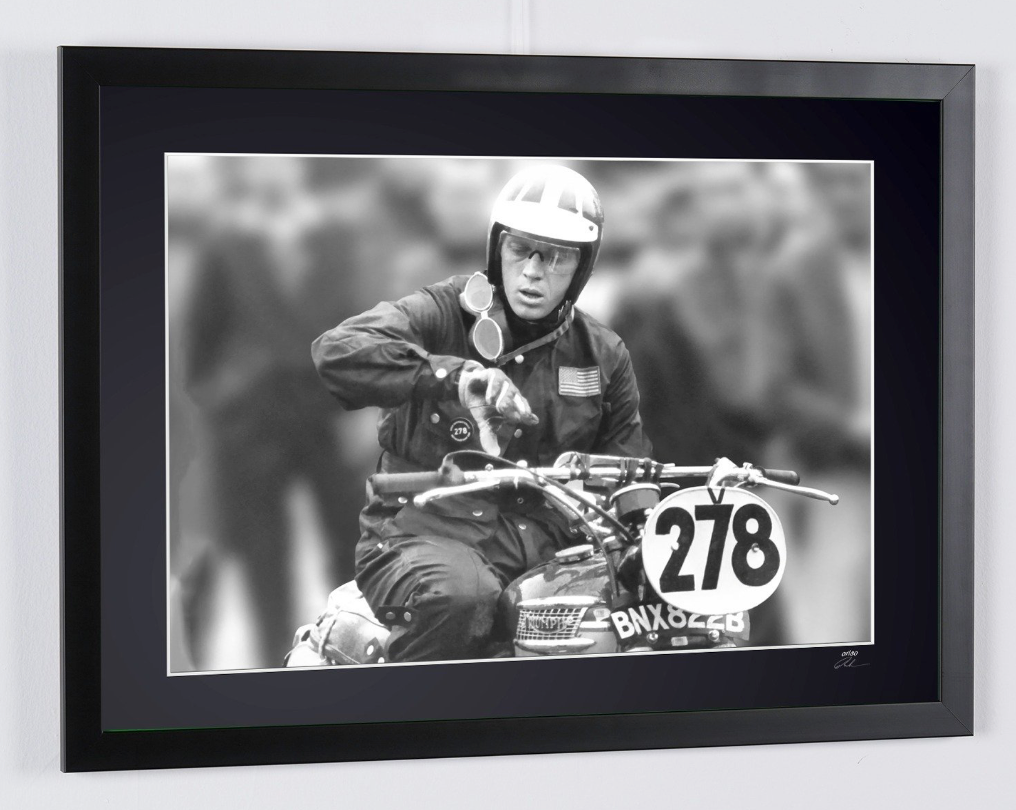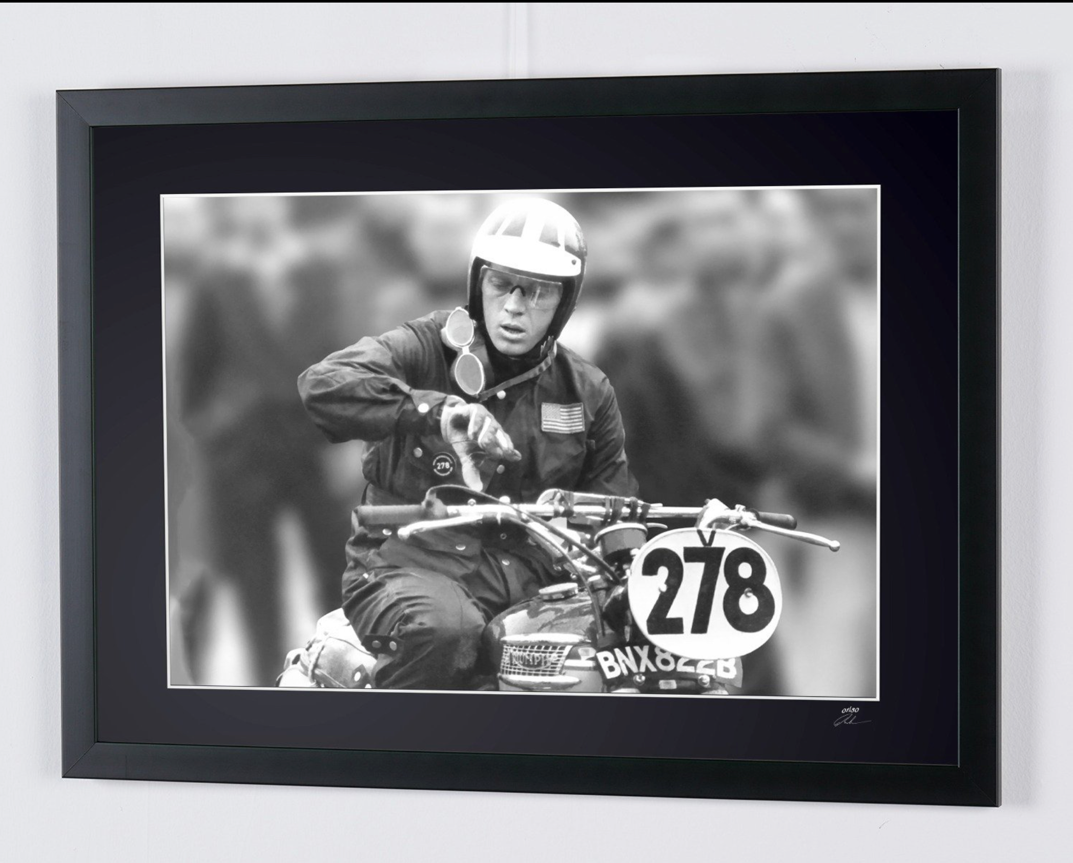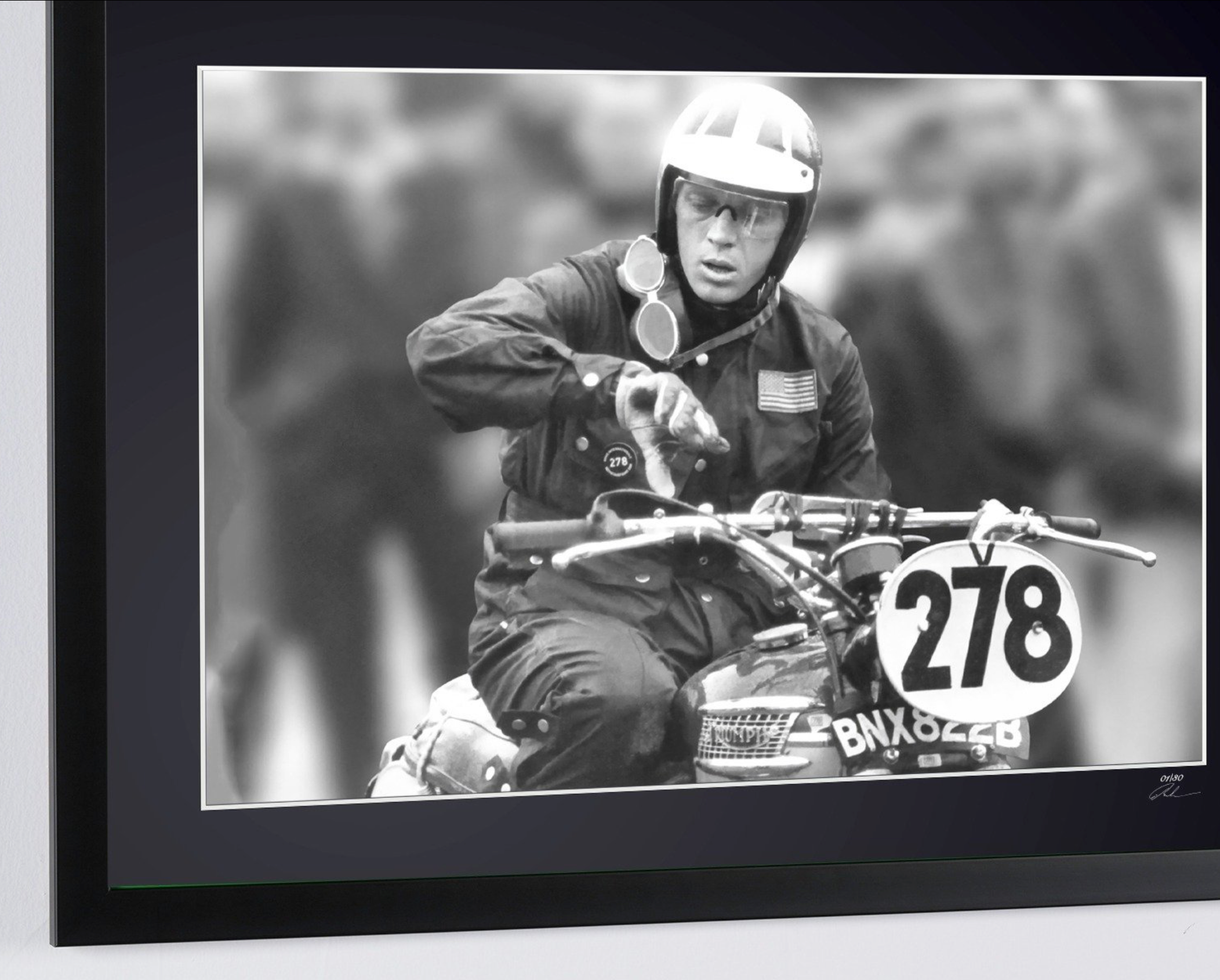 Photo encadrée de "Steve McQueen - #278 - The number of The King - International Six Days" — Tirage d'art noir et blanc sur papier Fine Art 70x50 cm