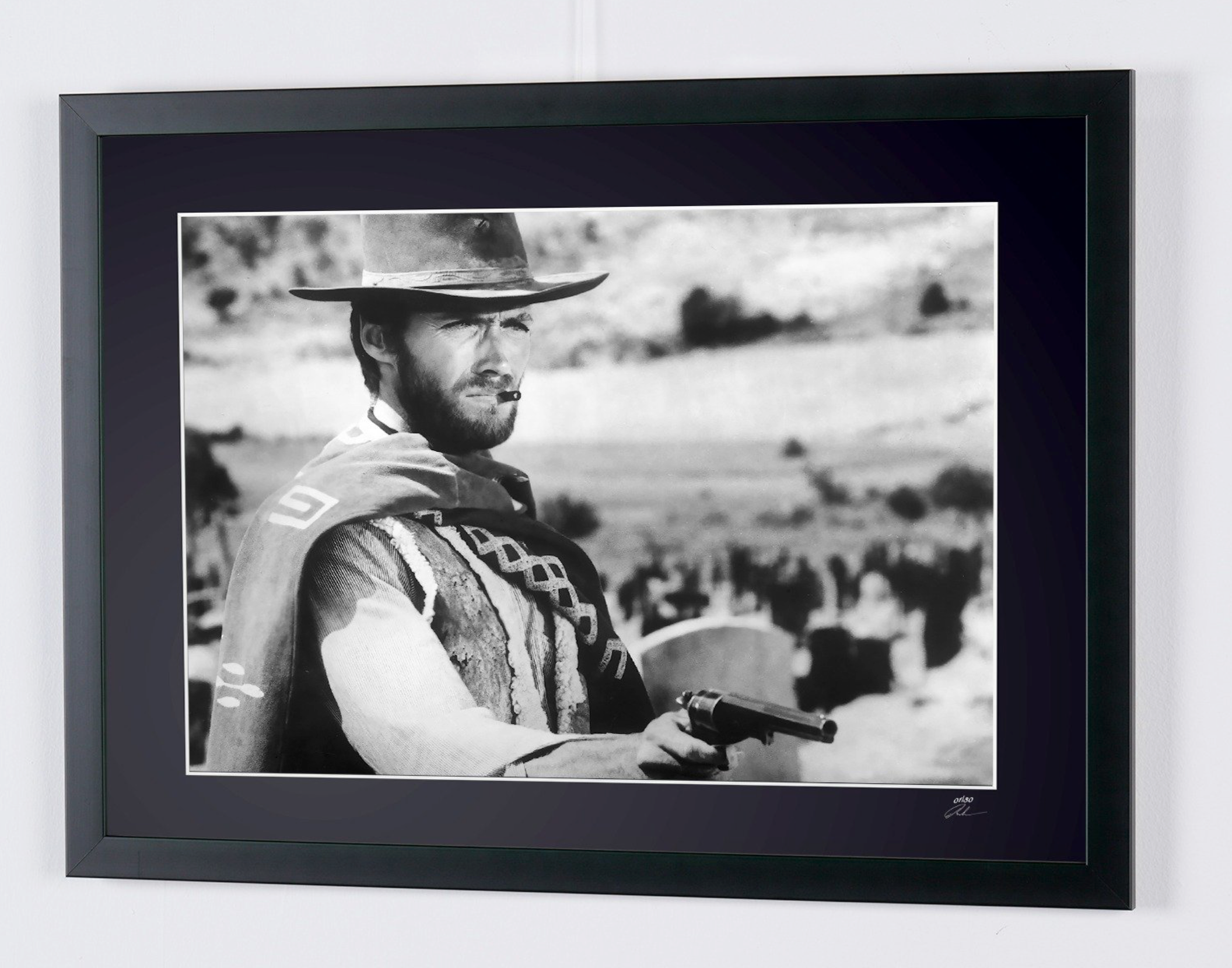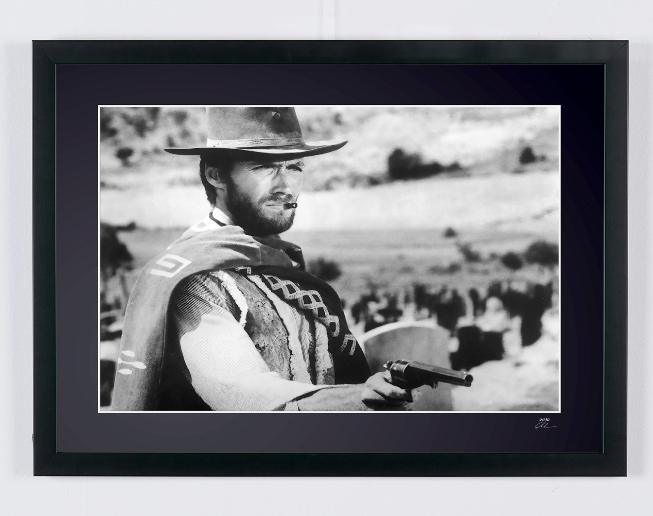 Photo encadrée de "The Good The Bad & The Ugly 1966 - Clint Eastwood as MoncoCallahan" — Tirage d'art noir et blanc sur papier Fine Art 70x50 cm