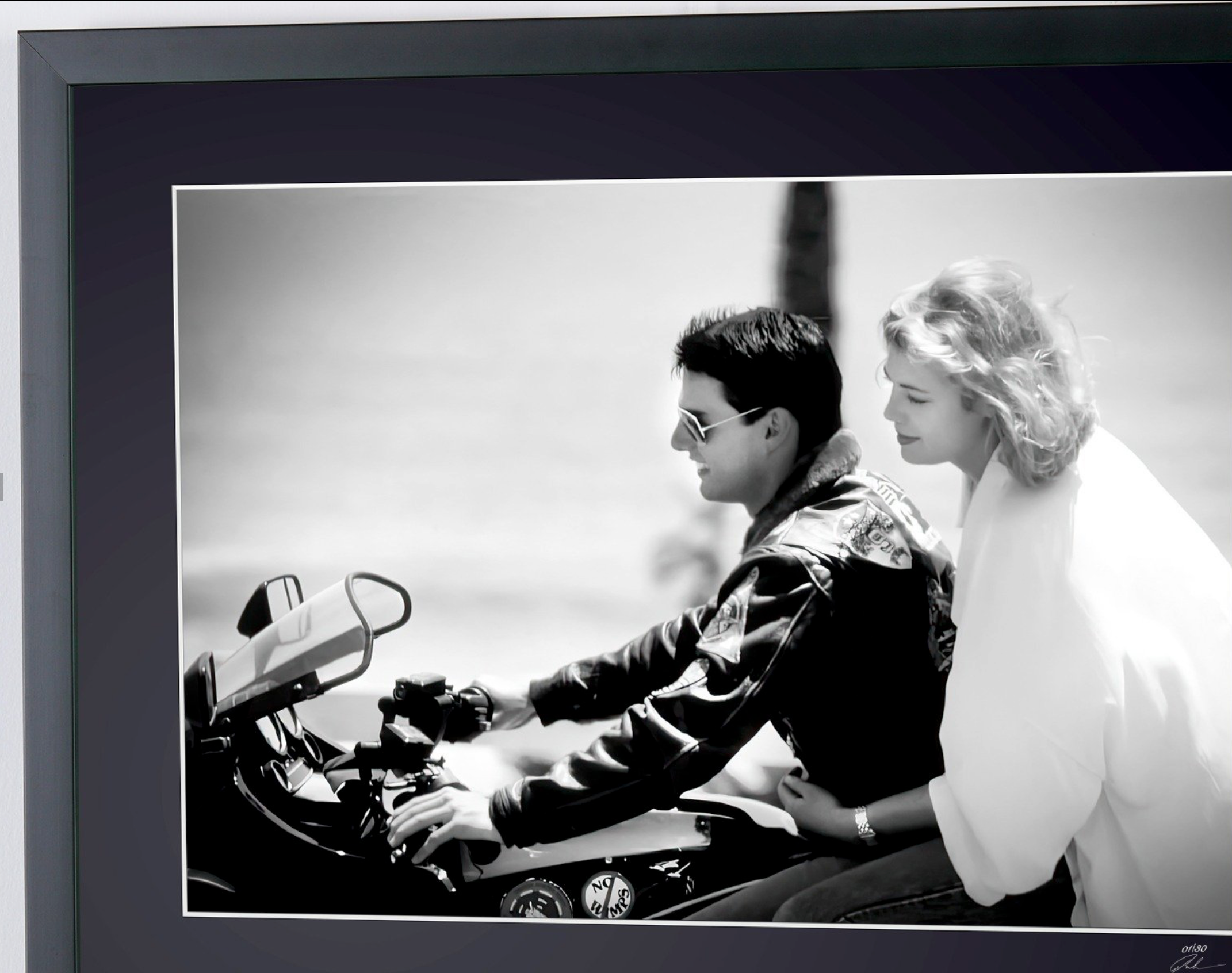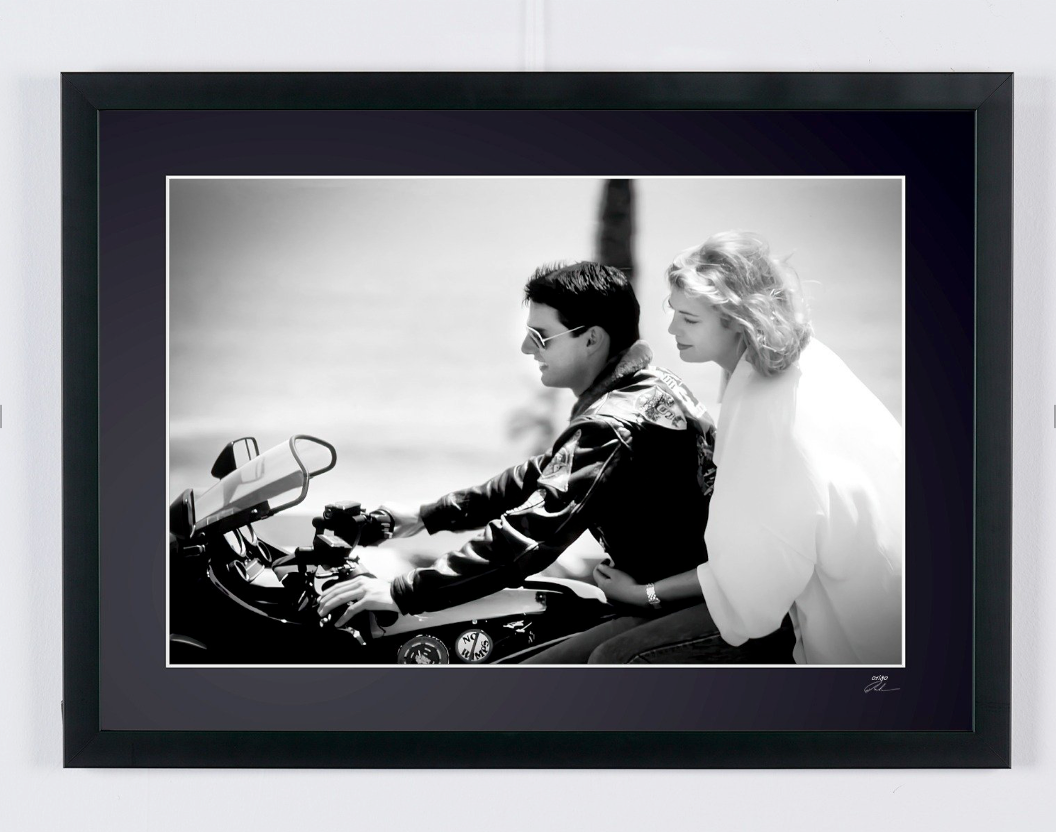Photo encadrée de "Top Gun 1986 - Tom Cruise & Kelly Mc Gillis" — Tirage d'art noir et blanc sur papier Fine Art 70x50 cm