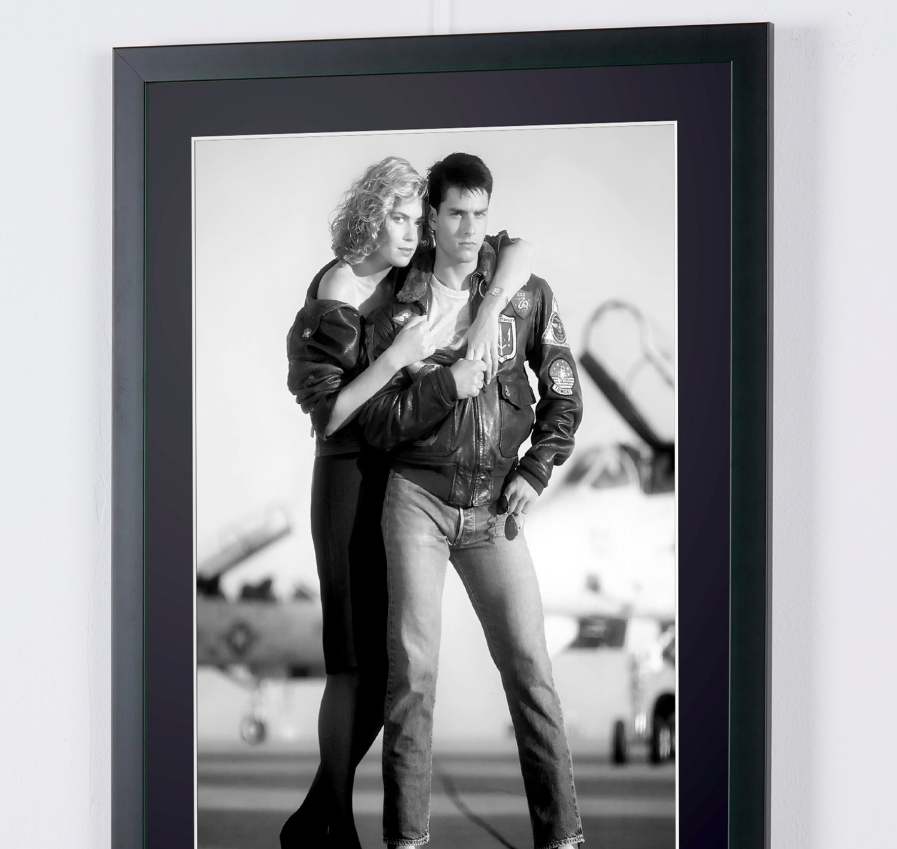 Photo encadrée de "Top Gun 1986 - Tom Cruise & Kelly McGillis" — Tirage d'art noir et blanc sur papier Fine Art 70x50 cm
