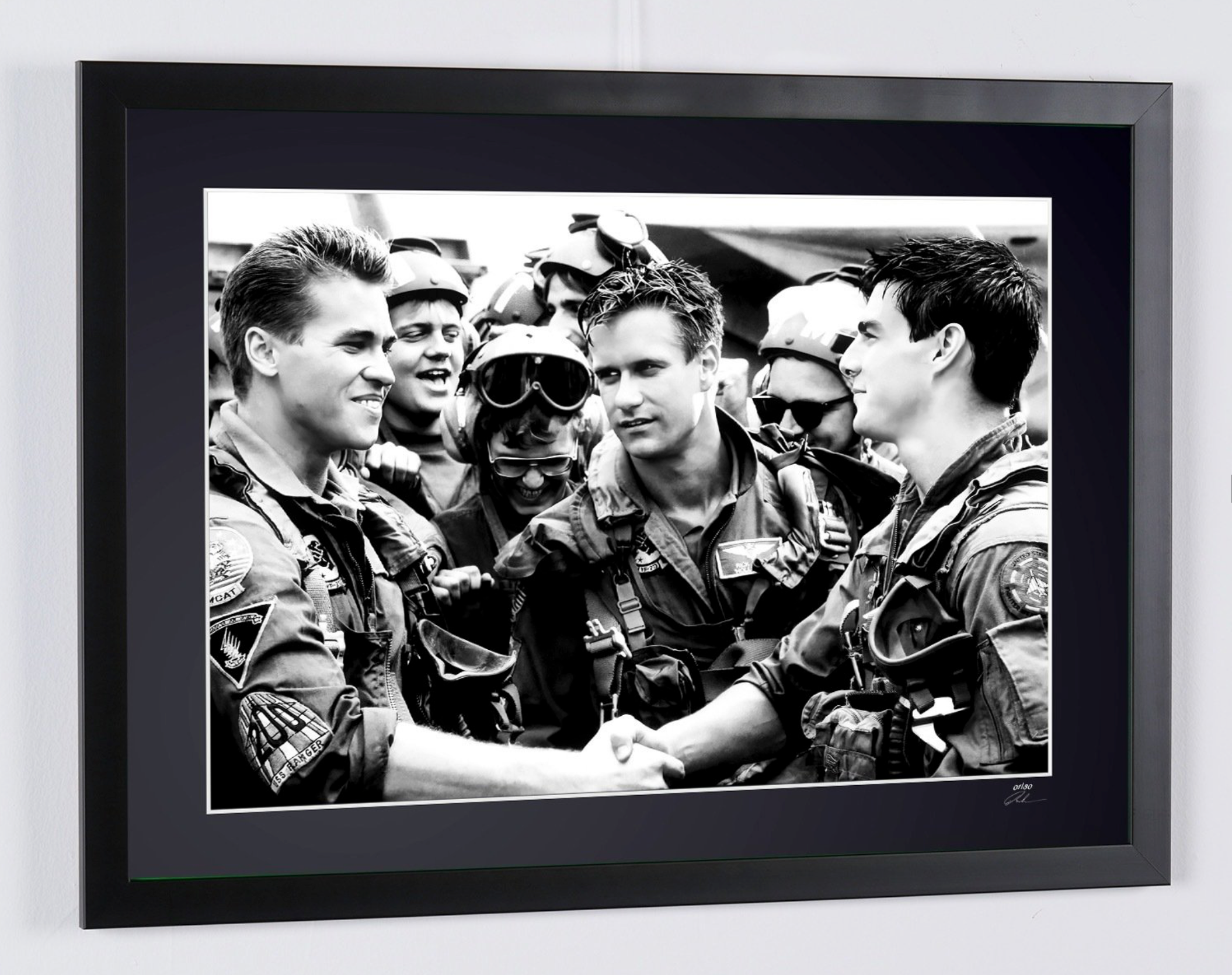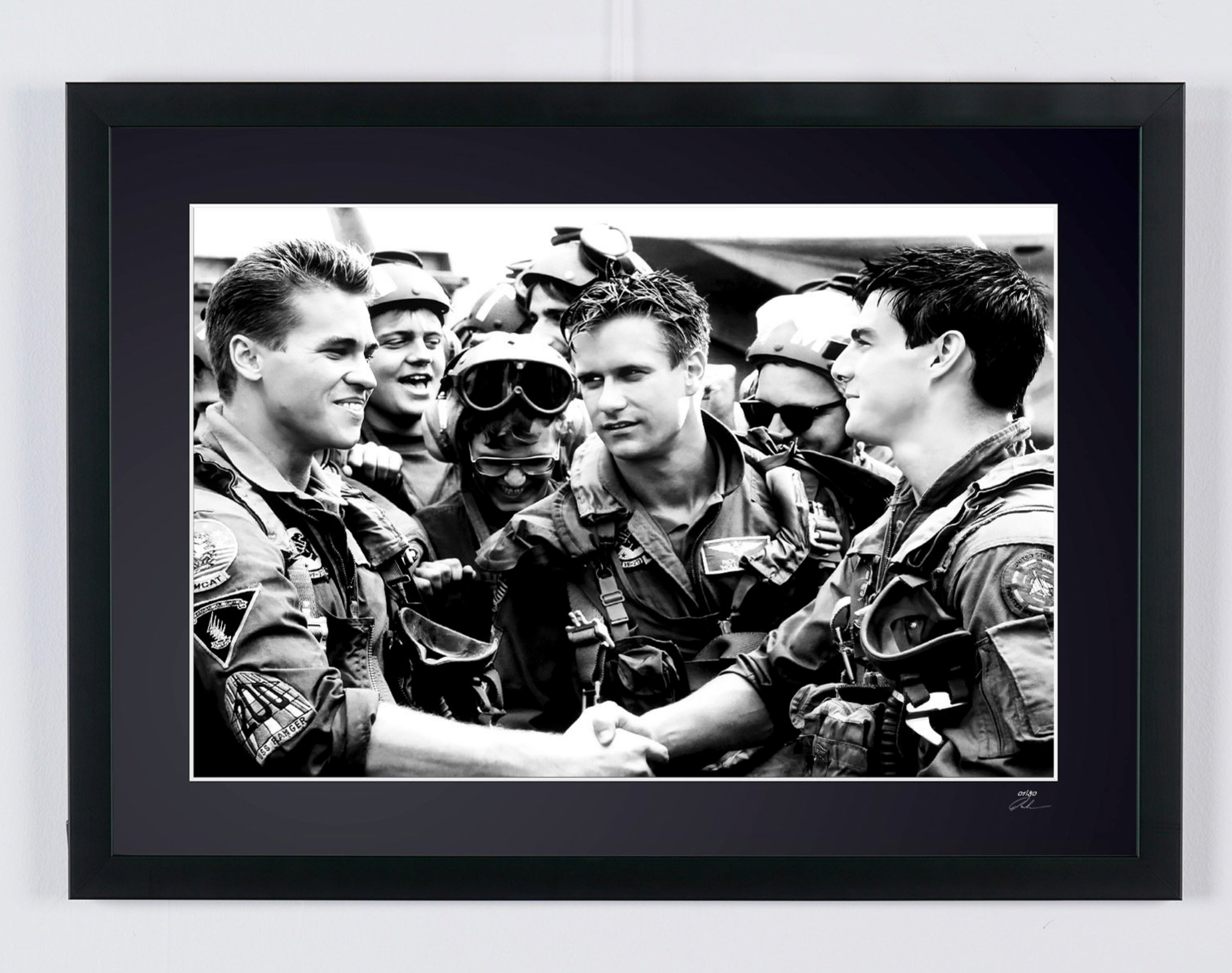 Photo encadrée de "Top Gun (1986) - Tom Cruise (Maverick) & & Val Kilmer (Ice)" — Tirage d'art noir et blanc sur papier Fine Art 70x50 cm