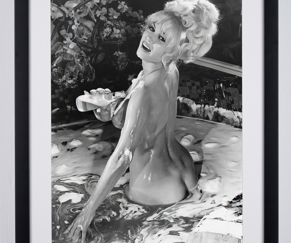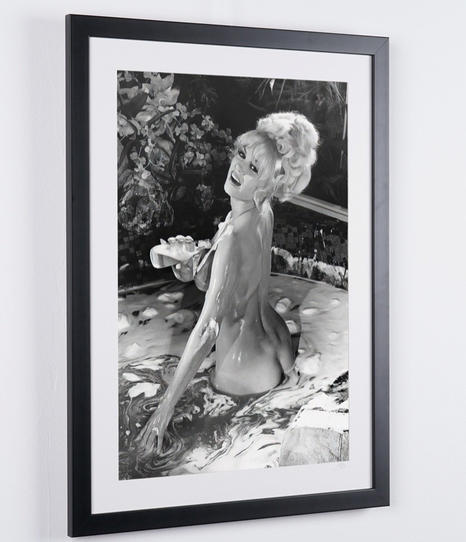 Fotografia emoldurada de «Brigitte Bardot - Bath» — Impressão artística a preto e branco em papel Fine Art 70x50 cm